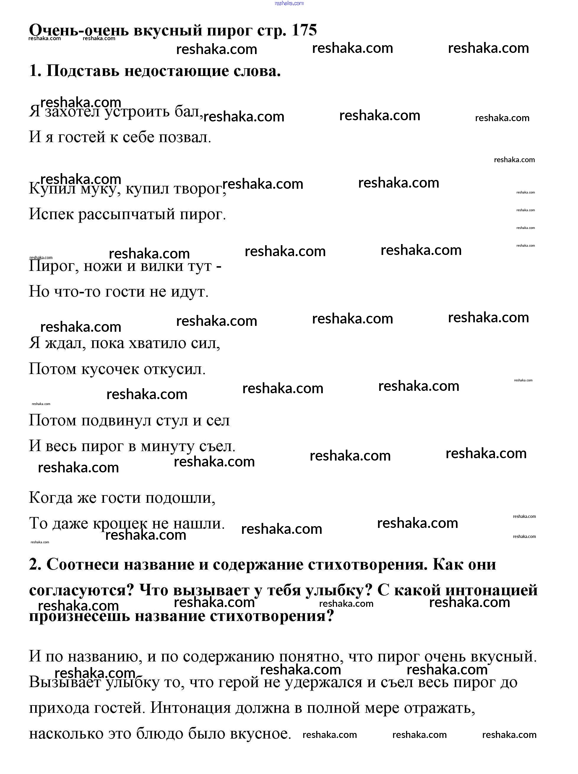 Решака - онлайн ответы Литература Климанова, Горецкий за 2 класс Учебник ФГОС 2018 - 175