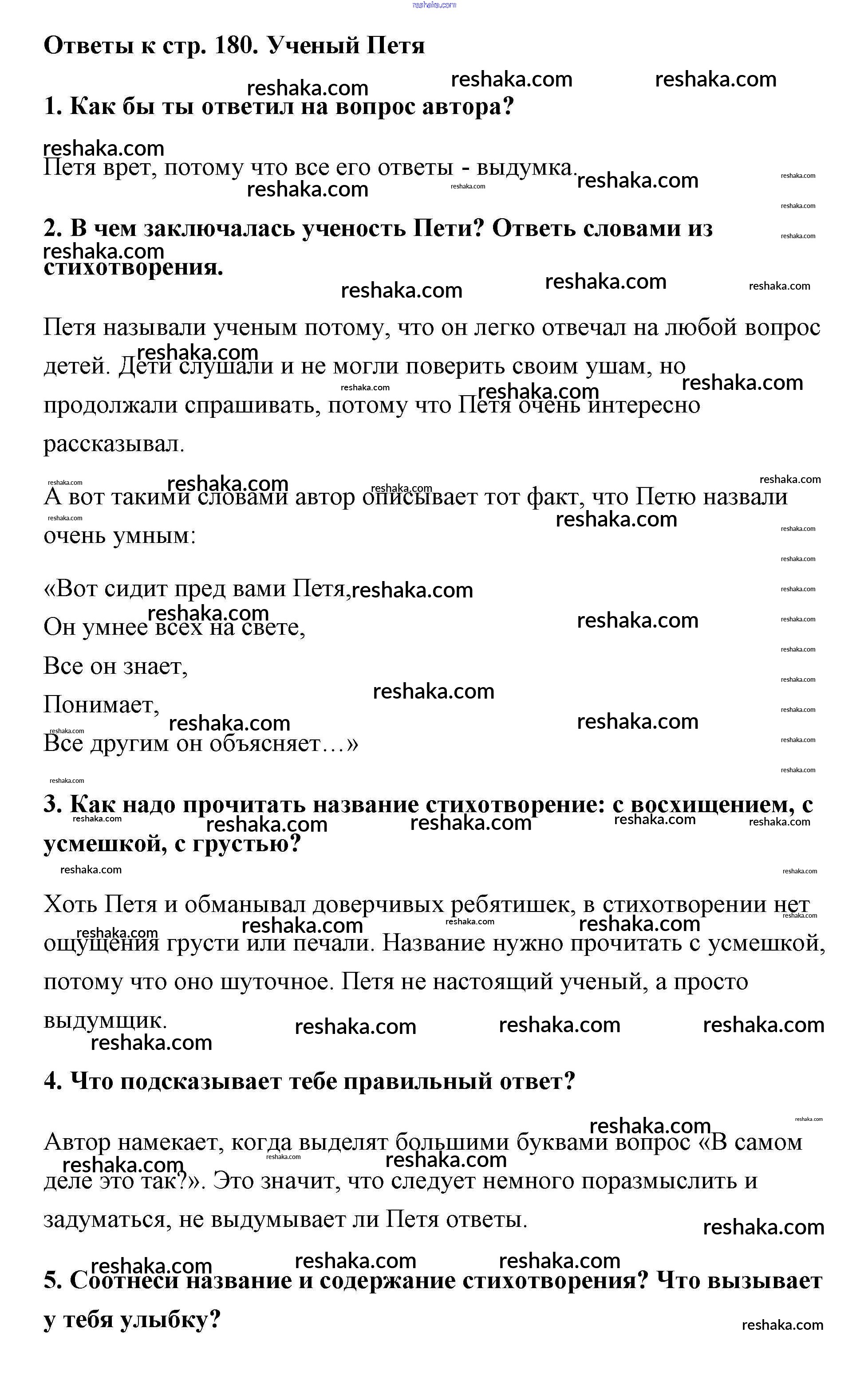 Решака - онлайн ответы Литература Климанова, Горецкий за 2 класс Учебник ФГОС 2018 - 180