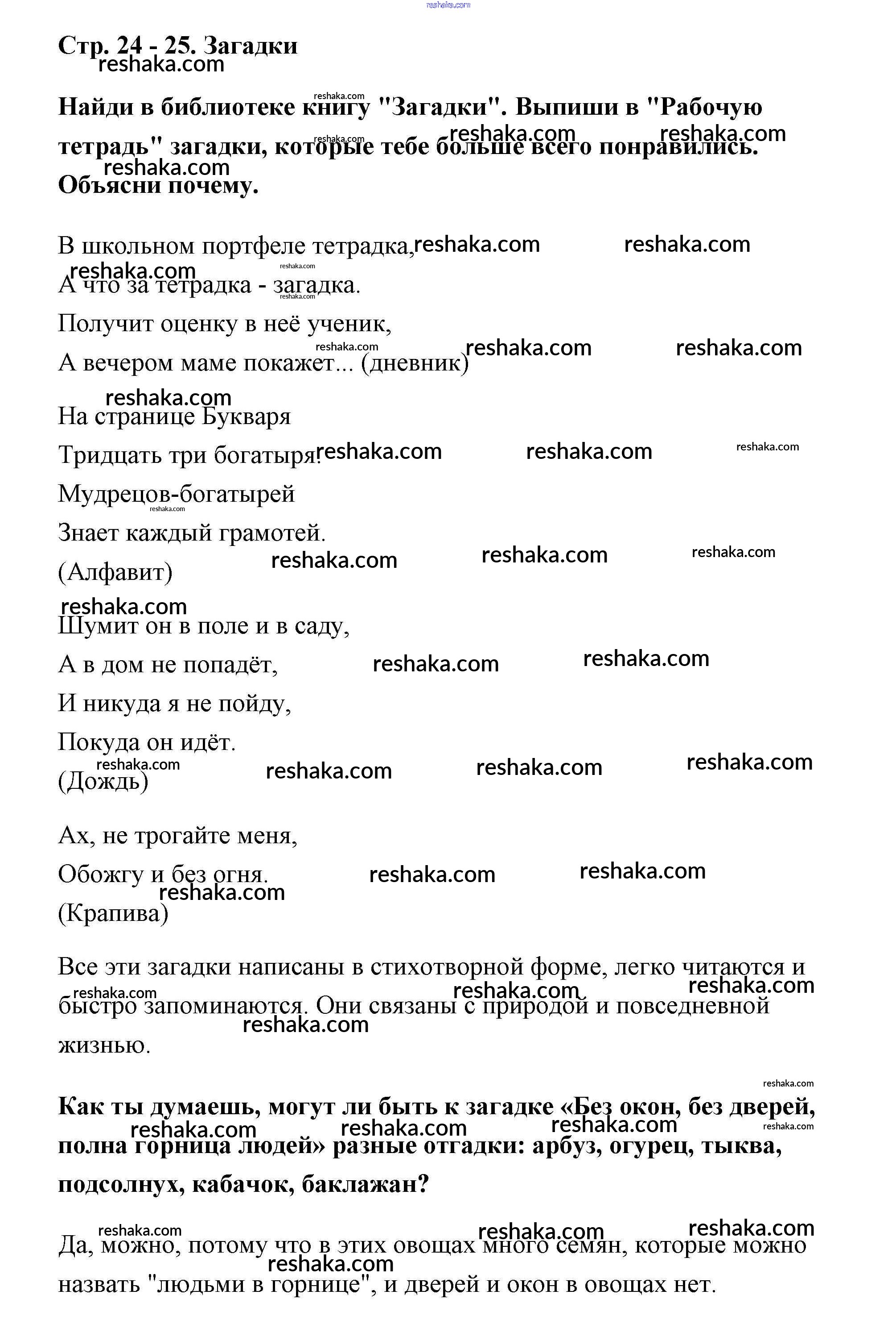 Решака - онлайн ответы Литература Климанова, Горецкий за 2 класс Учебник ФГОС 2018 - 24-25