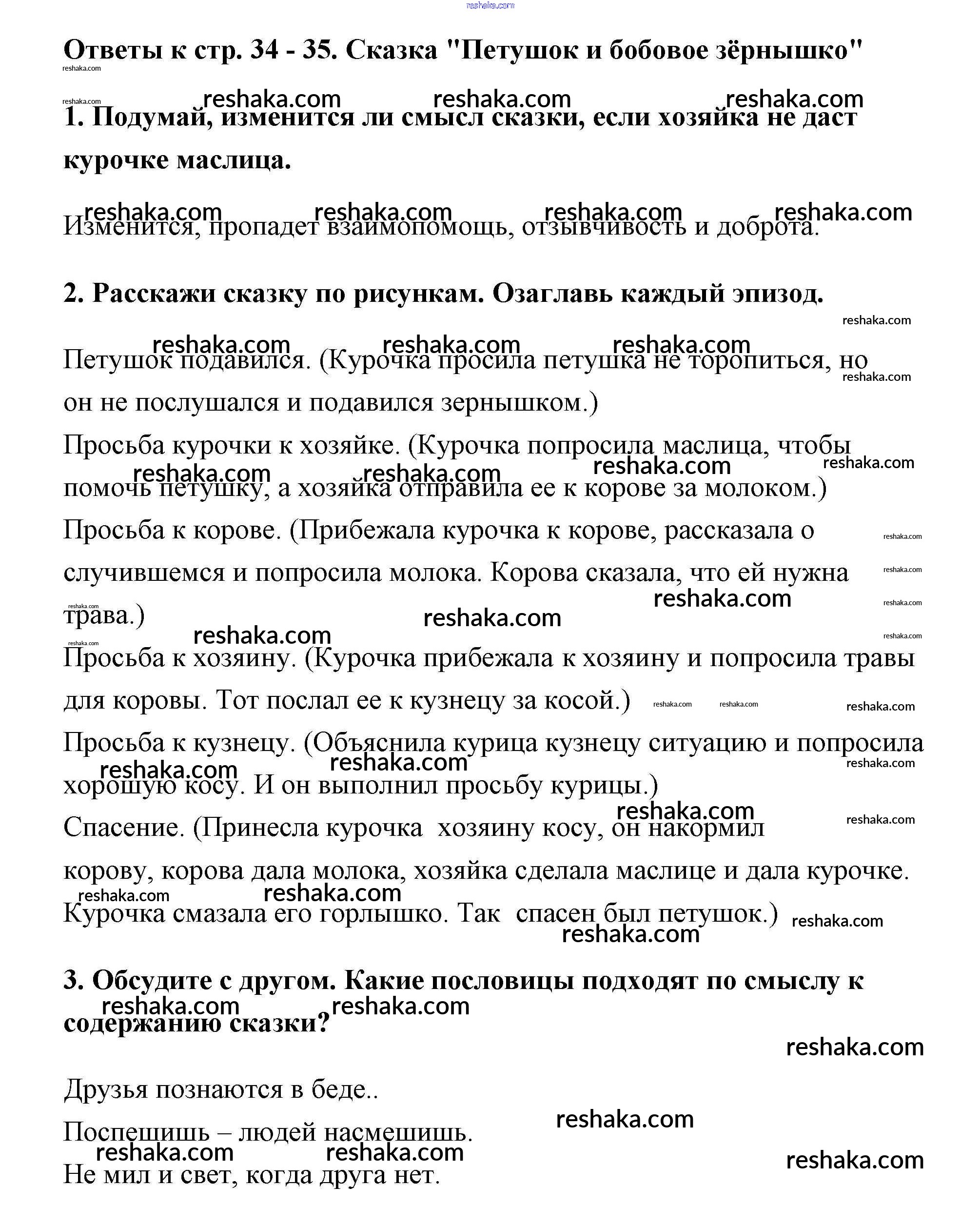 Решака - онлайн ответы Литература Климанова, Горецкий за 2 класс Учебник ФГОС 2018 - 34-35