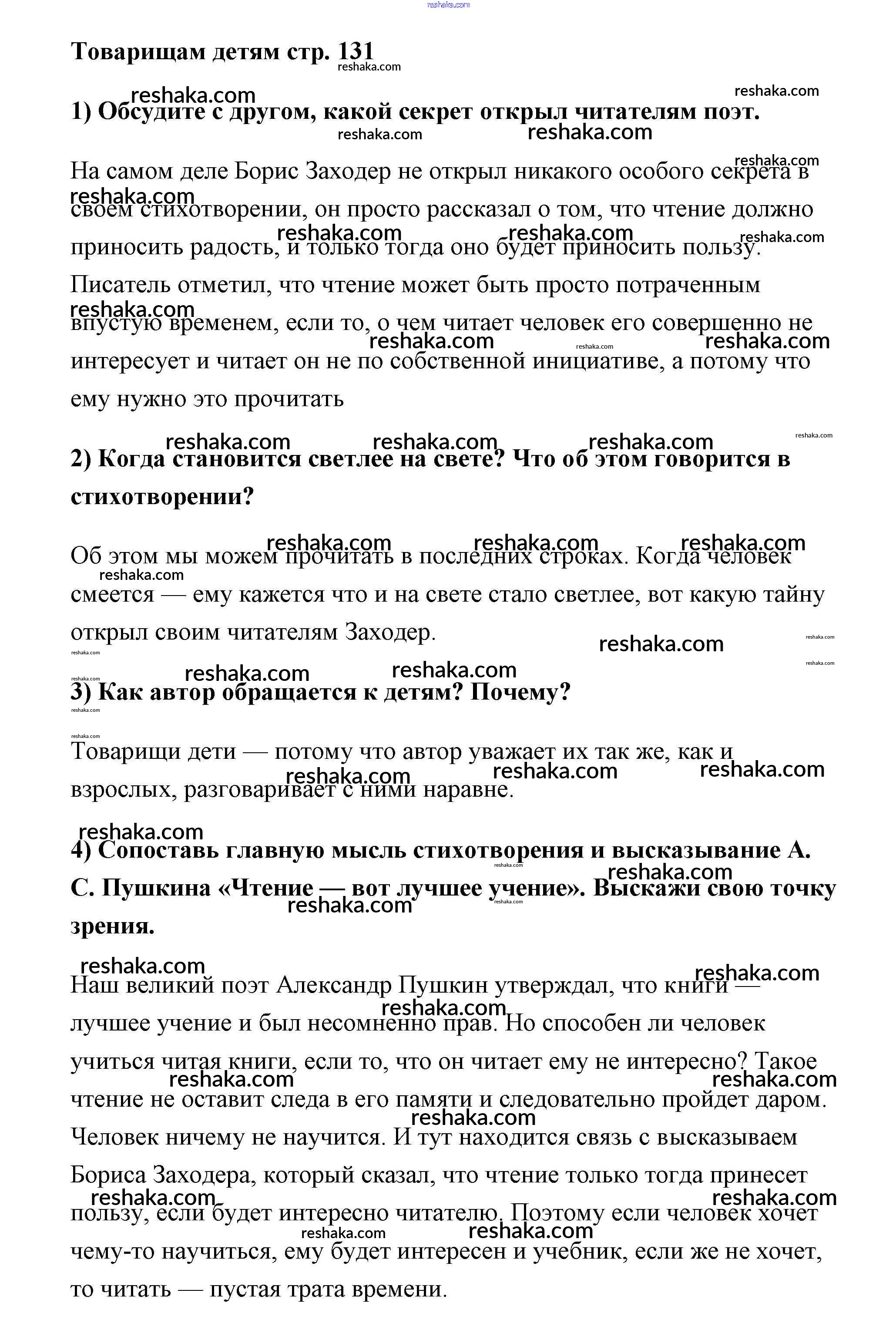 Представляем вам сборники по Литературе, с готовыми ответами к Учебнику Климанова школьной программы для учеников второй класса. Это не просто гдз с ответом, а с подсказками, как верно решить Часть 2 (Страницы) 131. Проверяй домашку с умом и получай высший балл!