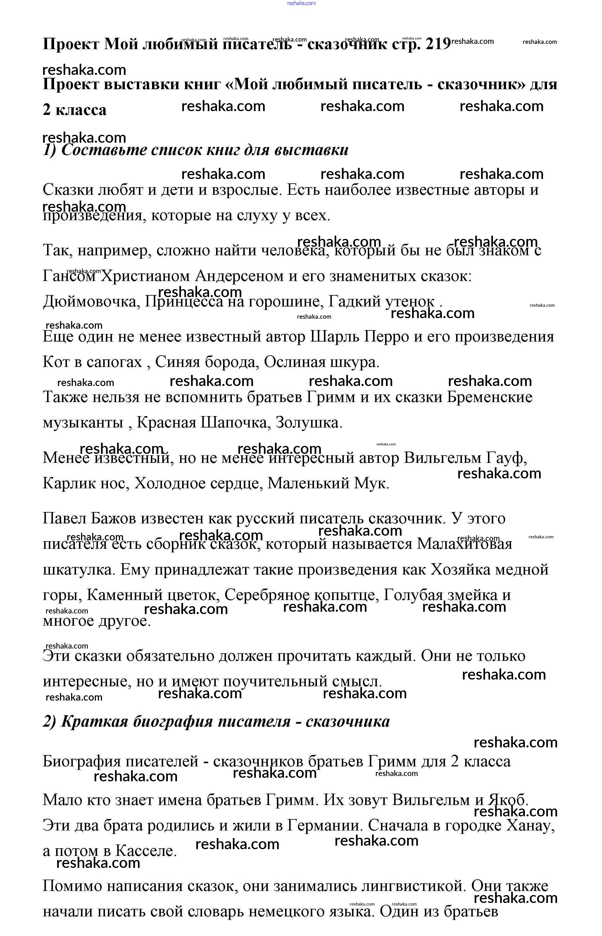 Представляем вам сборники по Литературе, с готовыми ответами к Учебнику Климанова школьной программы для учеников второй класса. Это не просто гдз с ответом, а с подсказками, как верно решить Часть 2 (Страницы) 219. Проверяй домашку с умом и получай высший балл!