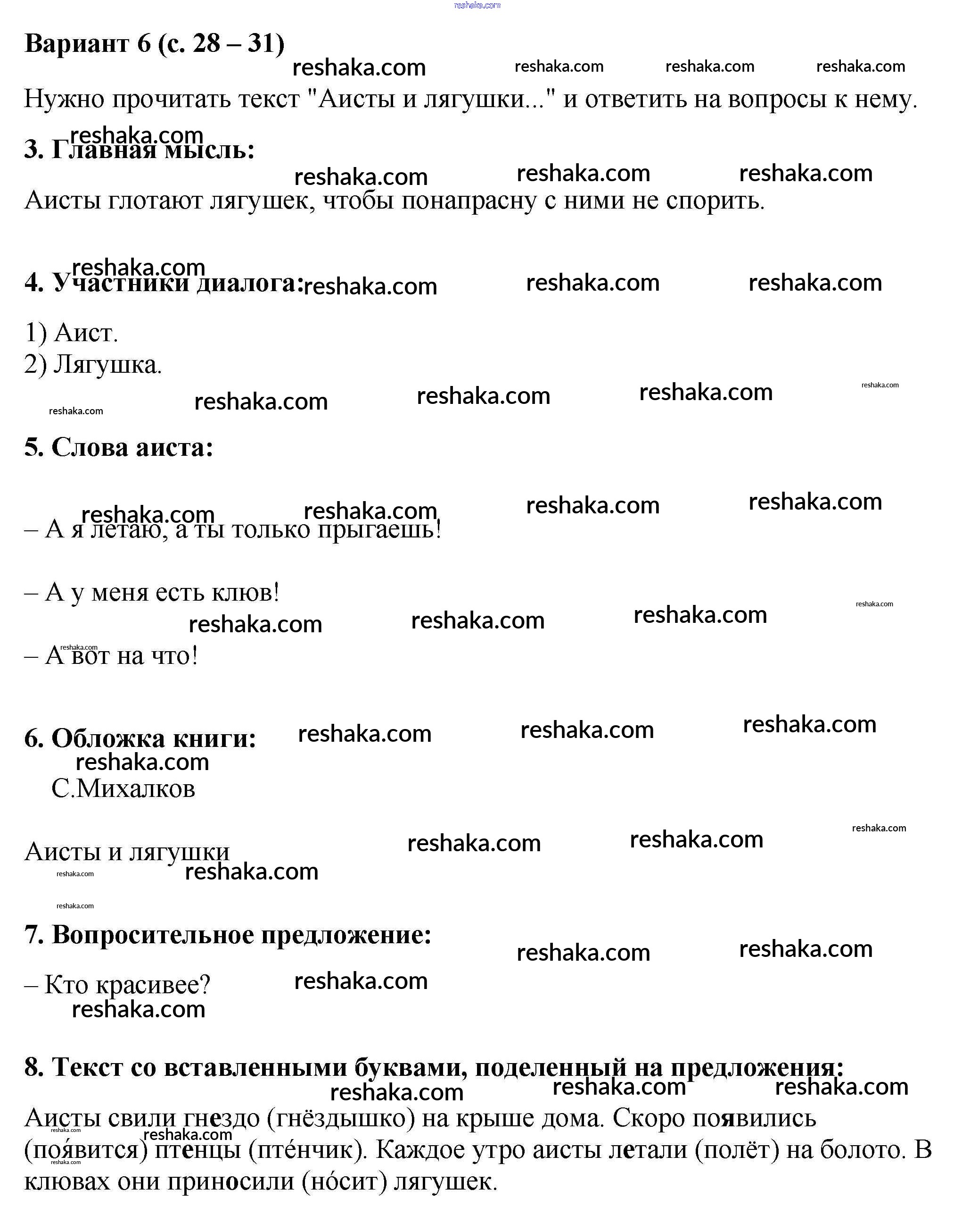 Решака - онлайн ответы Литература Крылова за 2 класс Работа с текстом ФГОС 2020 - 6 (с.28-31)