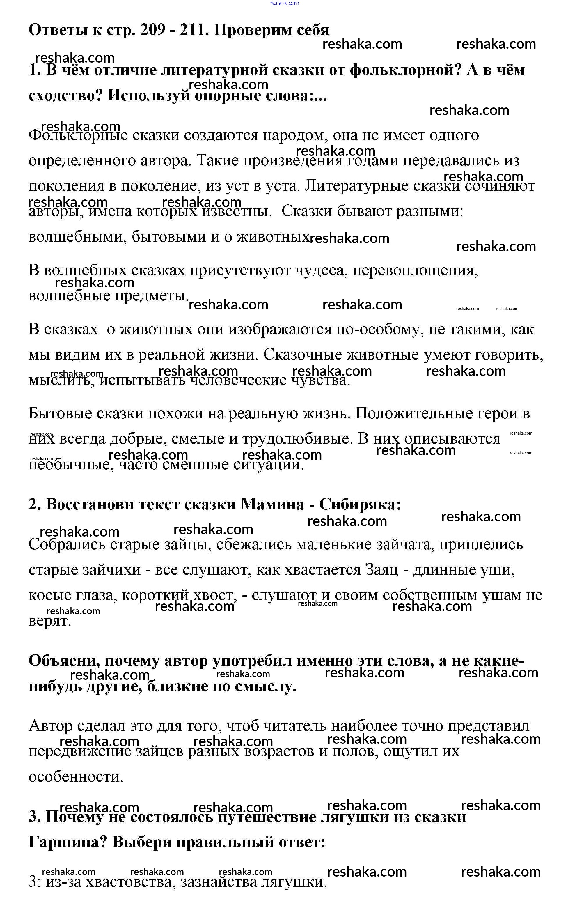Решака - онлайн ответы Литература Климанова, Горецкий за 3 класс Учебник ФГОС 2018 - 209-211