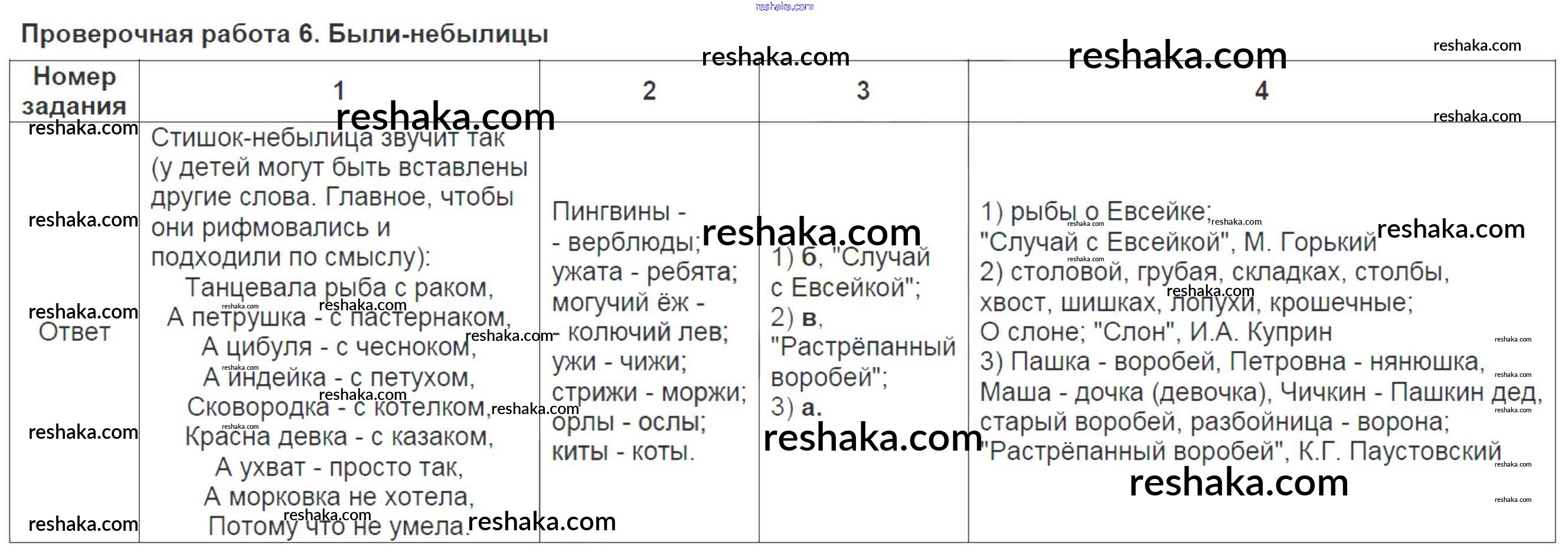 Решака - онлайн ответы Литература Кутявина за 3 класс Контрольно-измерительные материалы (КИМ) ФГОС 2017 - 6