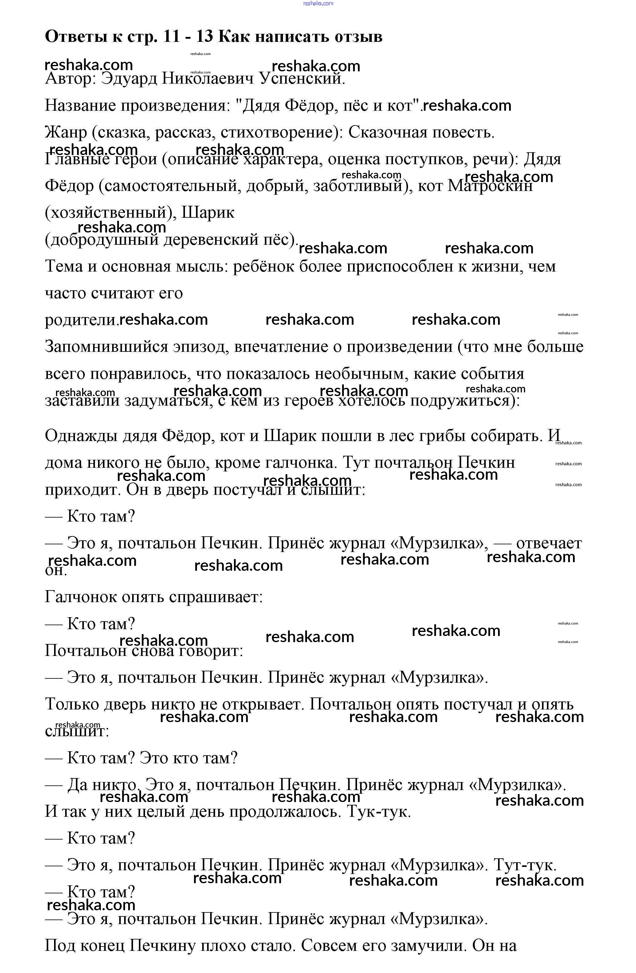 Решака - онлайн ответы Литература Бойкина, Виноградская за 3 класс Рабочая тетрадь ФГОС 2018 - 11-13