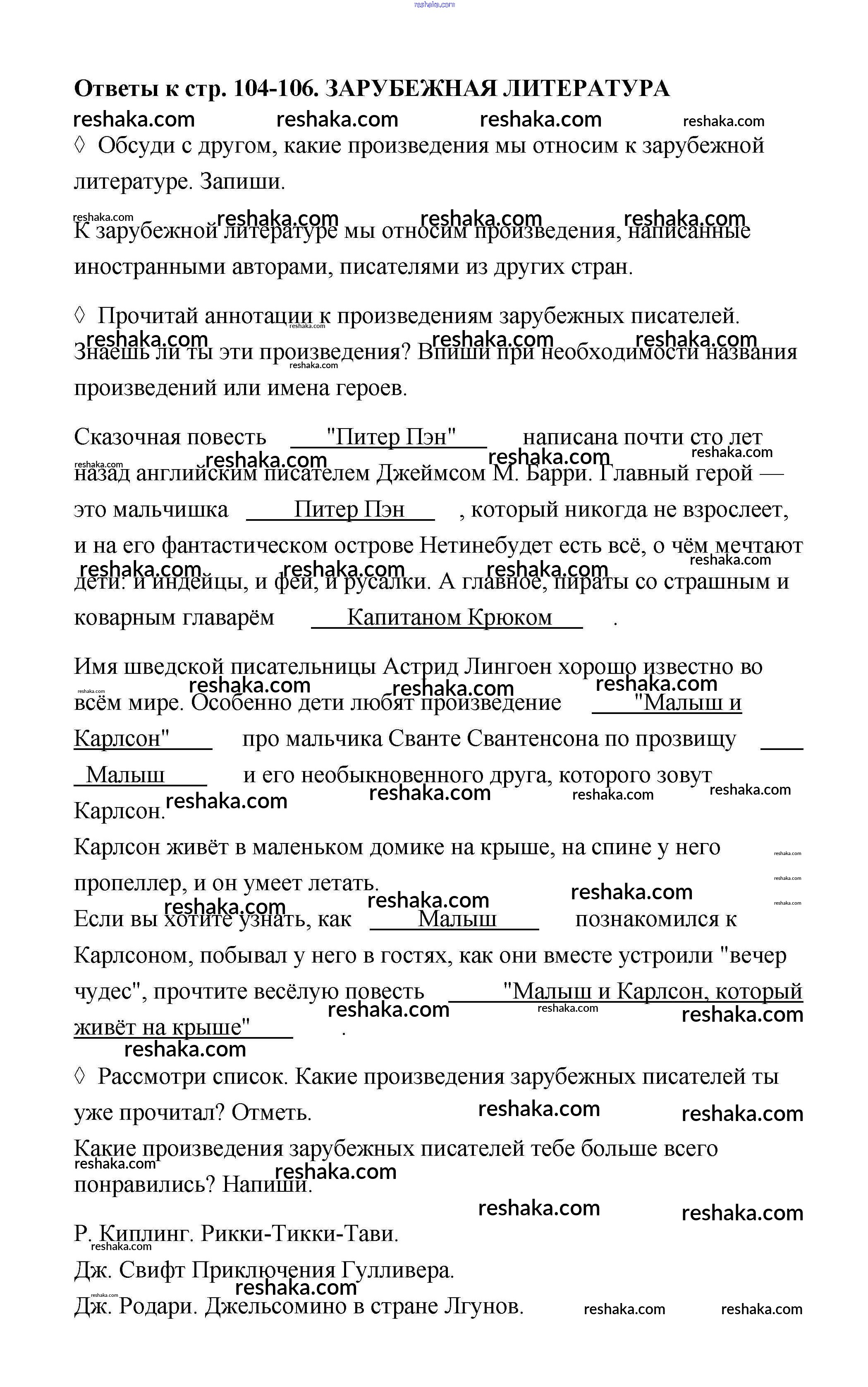 Решака - онлайн ответы Литература Бойкина, Виноградская за 4 класс Рабочая тетрадь ФГОС 2016 - 104-106