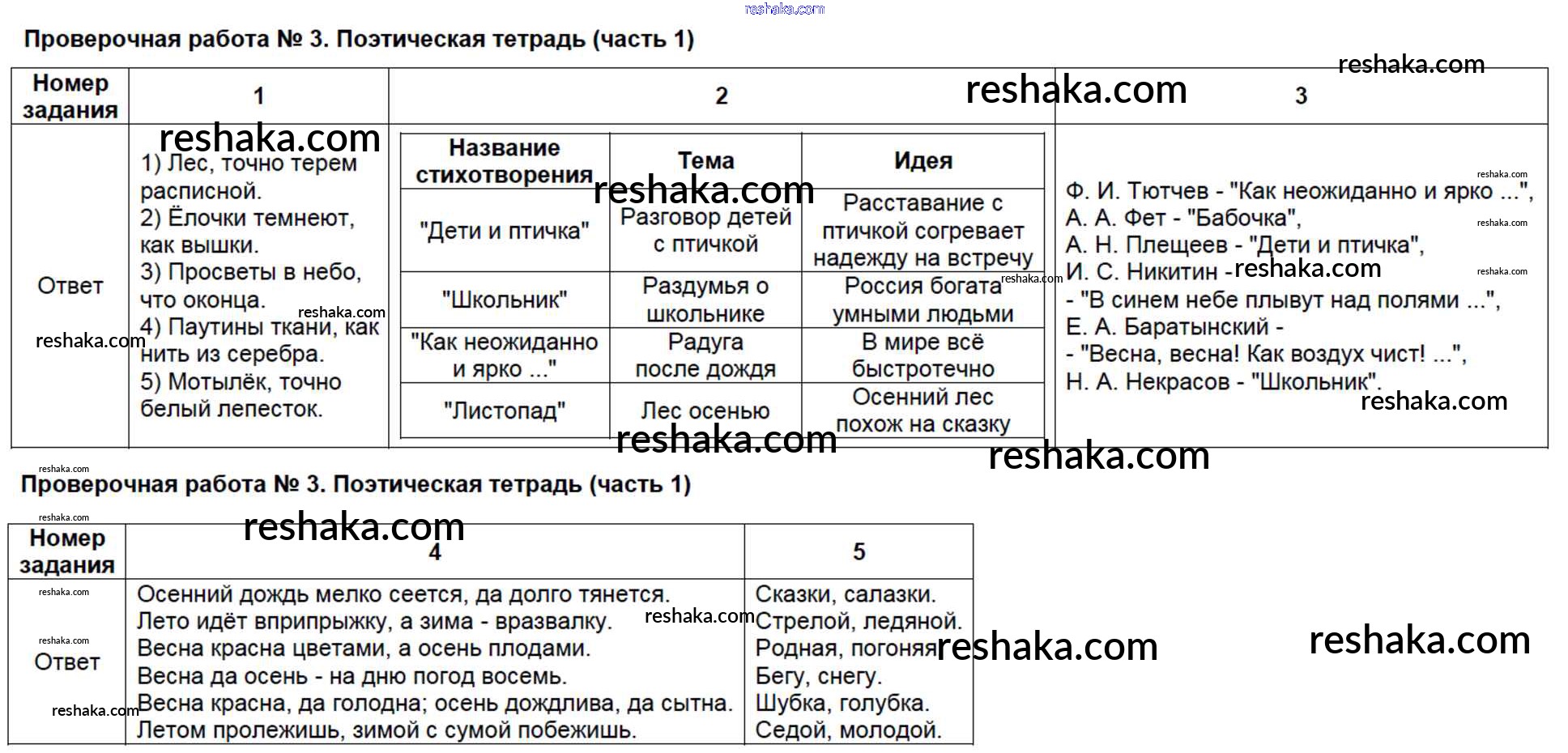 Решака - онлайн ответы Литература Шубина за 4 класс Контрольно-измерительные материалы (КИМ) ФГОС 2014 - ПР-3. Поэтическая тетрадь