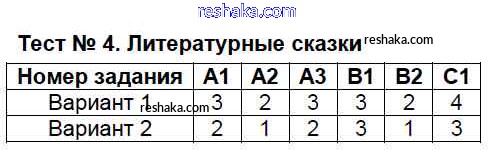 Решака - онлайн ответы Литература Шубина за 4 класс Контрольно-измерительные материалы (КИМ) ФГОС 2014 - Тест №4. Литературные сказки