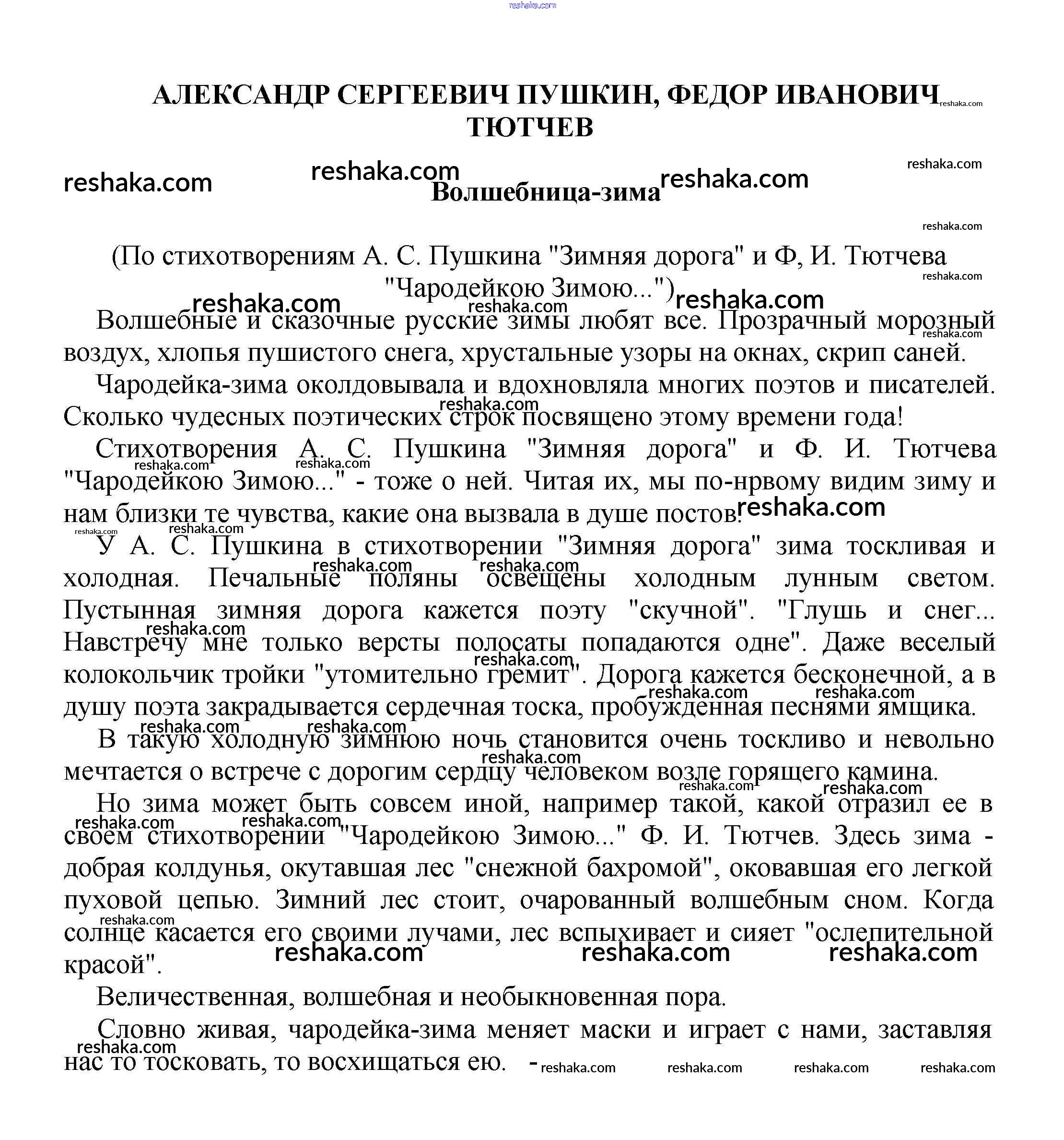 Решака - онлайн ответы Литература Белик, Музычук за 5-10 класс Сочинения 2017 - Волшебница-зима