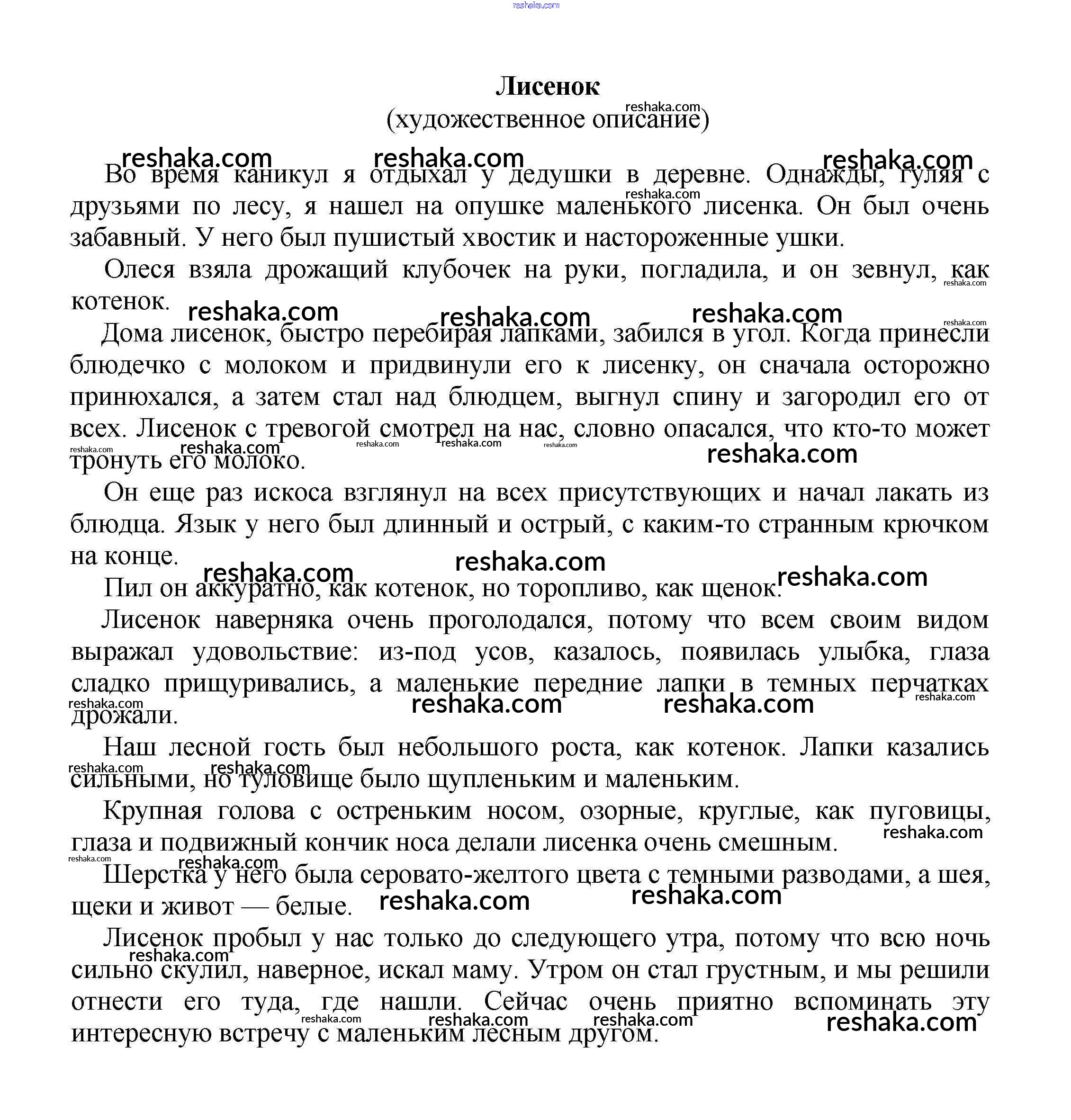 Решака - онлайн ответы Литература Белик, Музычук за 5-10 класс Сочинения 2017 - Лисенок (художественное описание)