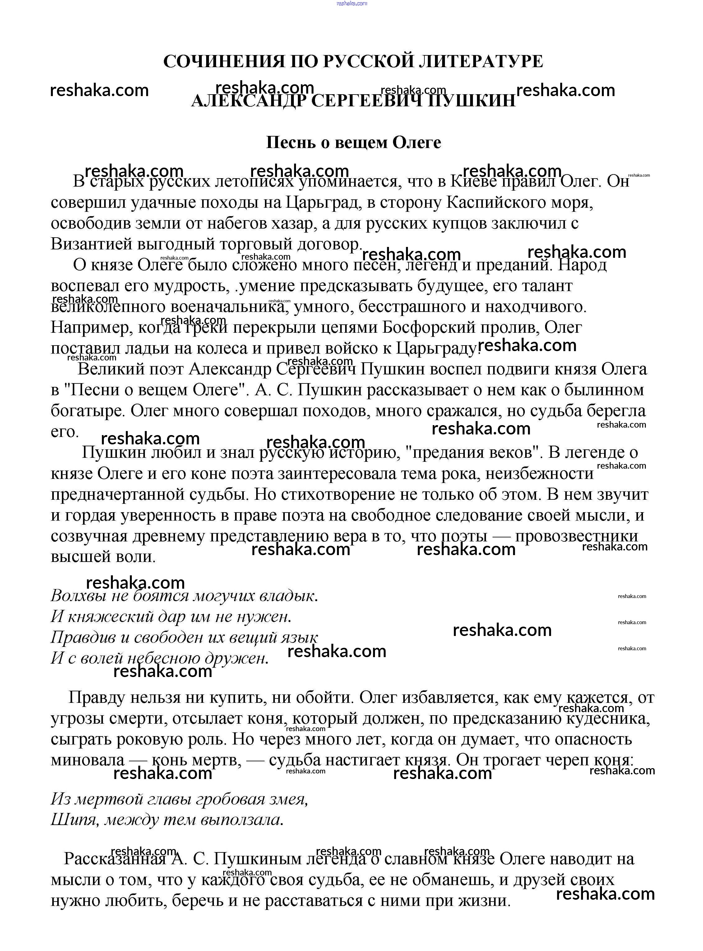 Решака - онлайн ответы Литература Белик, Музычук за 5-10 класс Сочинения 2017 - Песнь о вещем Олеге