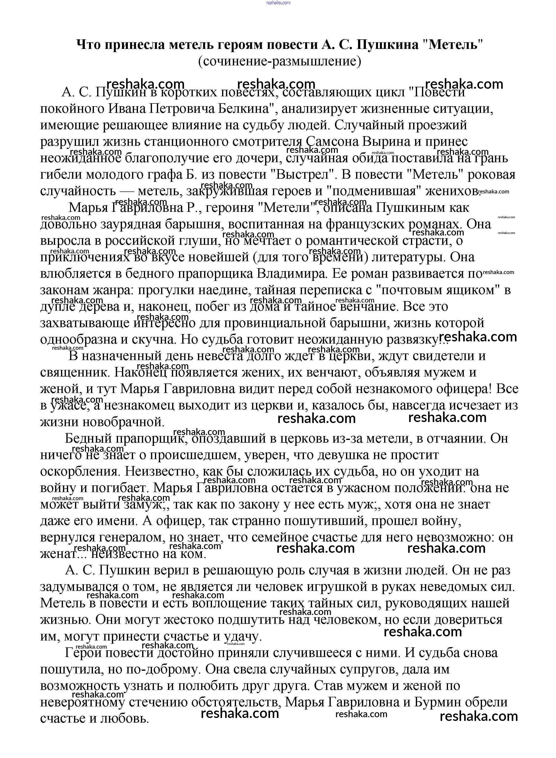 Решака - онлайн ответы Литература Белик, Музычук за 5-10 класс Сочинения 2017 - Что принесла метель героям повести А. С. Пушкина "Метель" (сочинение-размышление)
