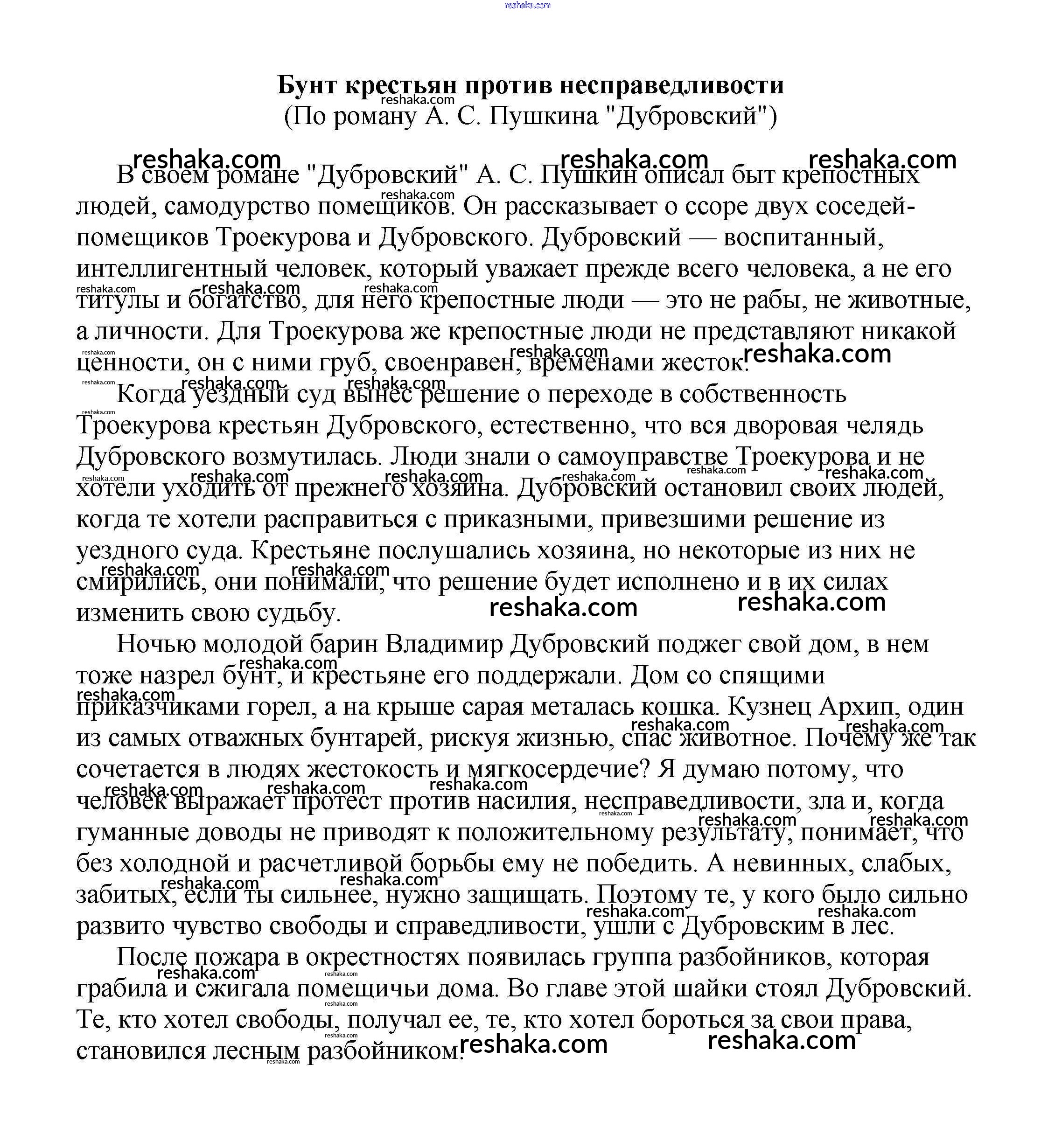 Решака - онлайн ответы Литература Белик, Музычук за 5-10 класс Сочинения 2017 - Бунт крестьян против несправедливости (По роману А. С. Пушкина "Дубровский")