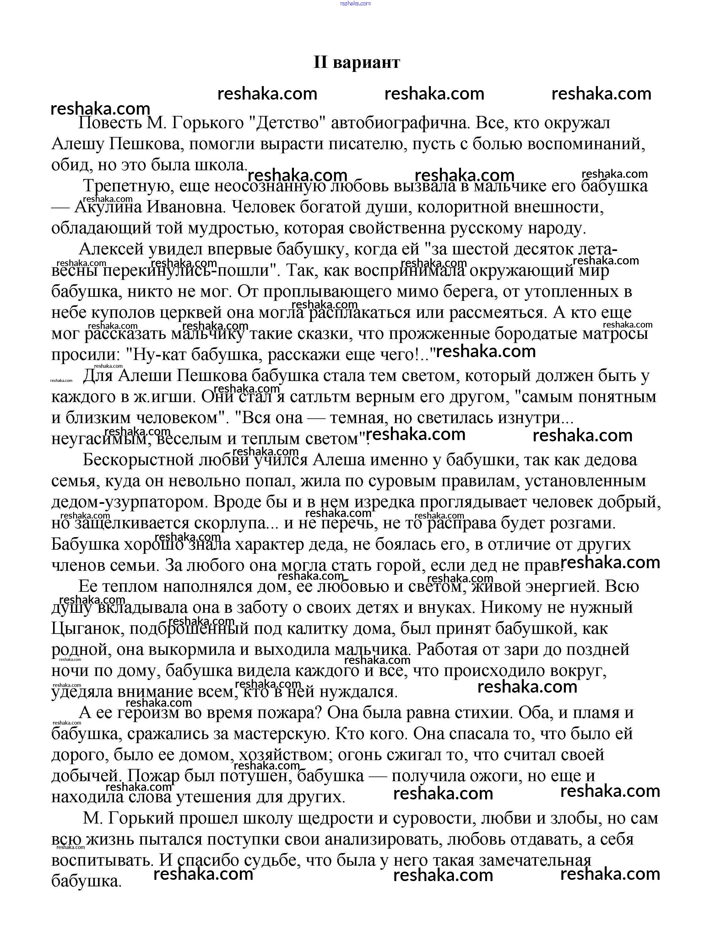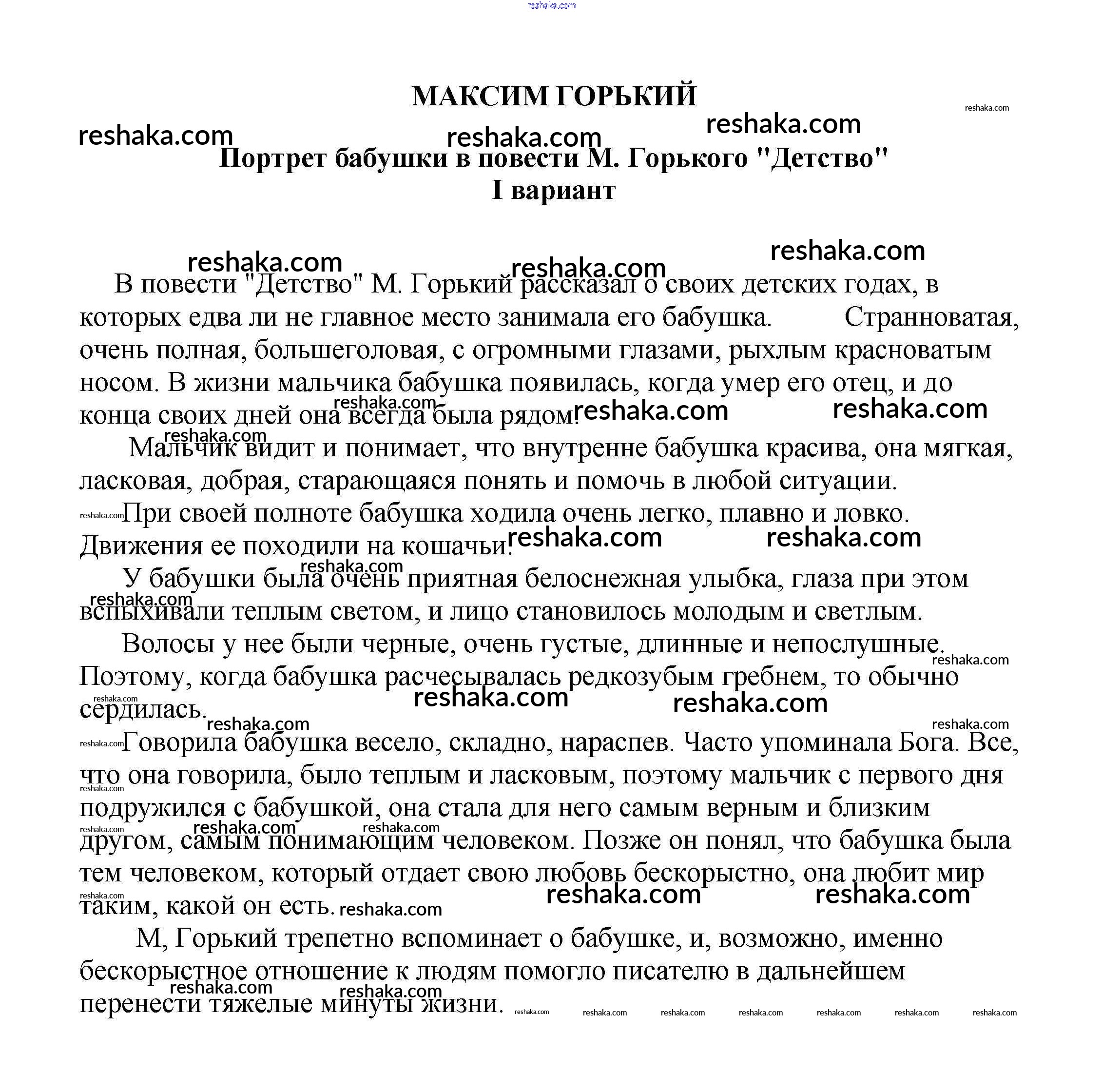 Решака - онлайн ответы Литература Белик, Музычук за 5-10 класс Сочинения 2017 - Портрет бабушки в повести М. Горького "Детство" I вариант