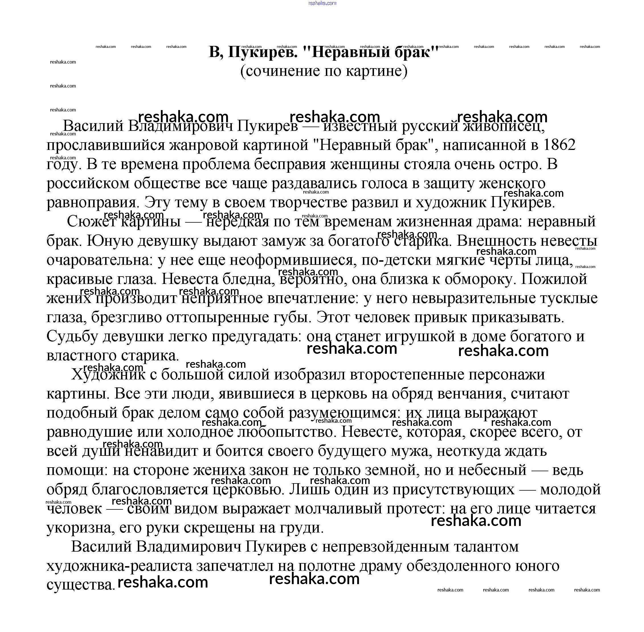 Решака - онлайн ответы Литература Белик, Музычук за 5-10 класс Сочинения 2017 - В, Пукирев. "Неравный брак" (сочинение по картине)
