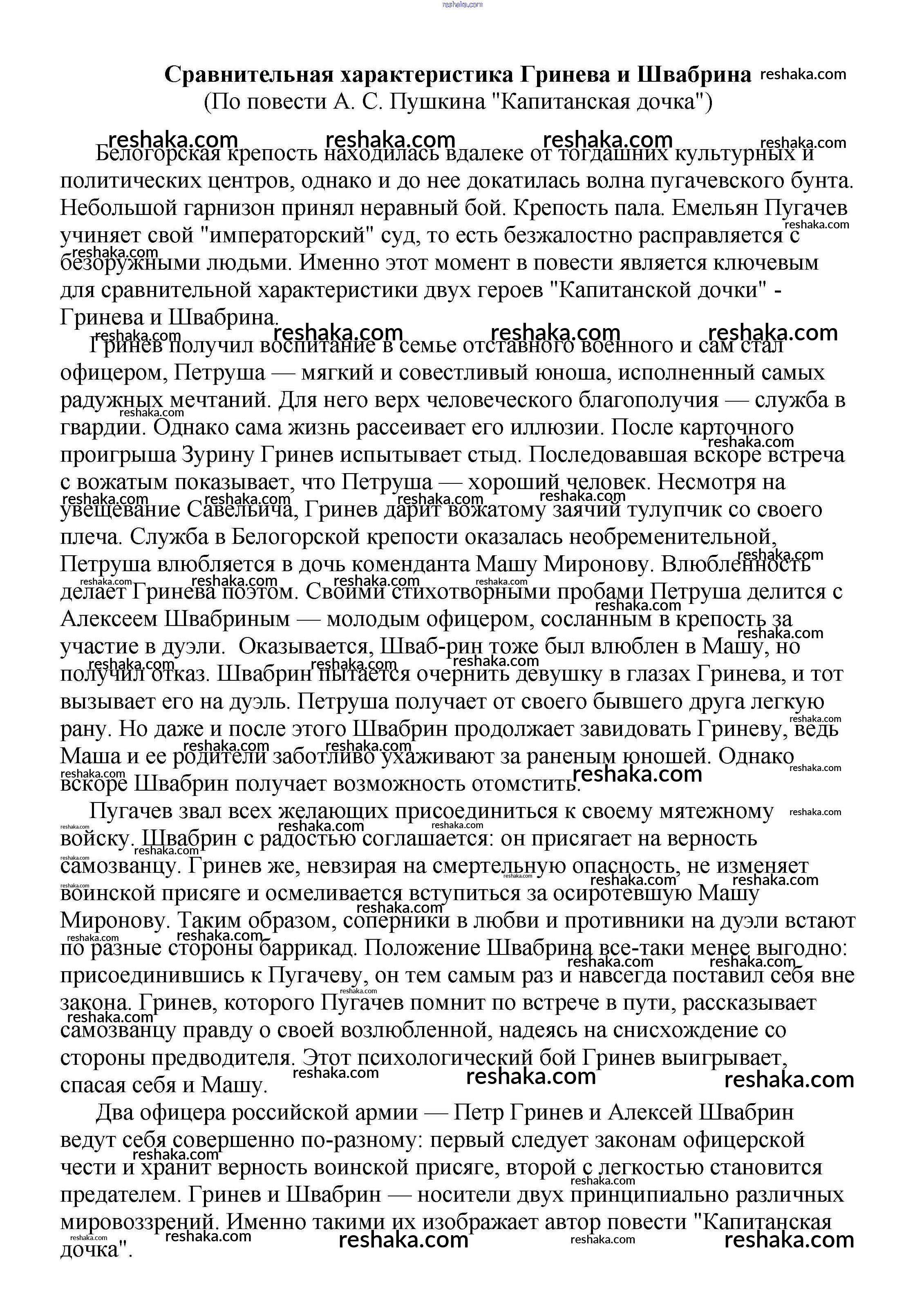 Решака - онлайн ответы Литература Белик, Музычук за 5-10 класс Сочинения 2017 - Сравнительная характеристика Гринева и Швабрина (По повести А. С. Пушкина "Капитанская дочка")
