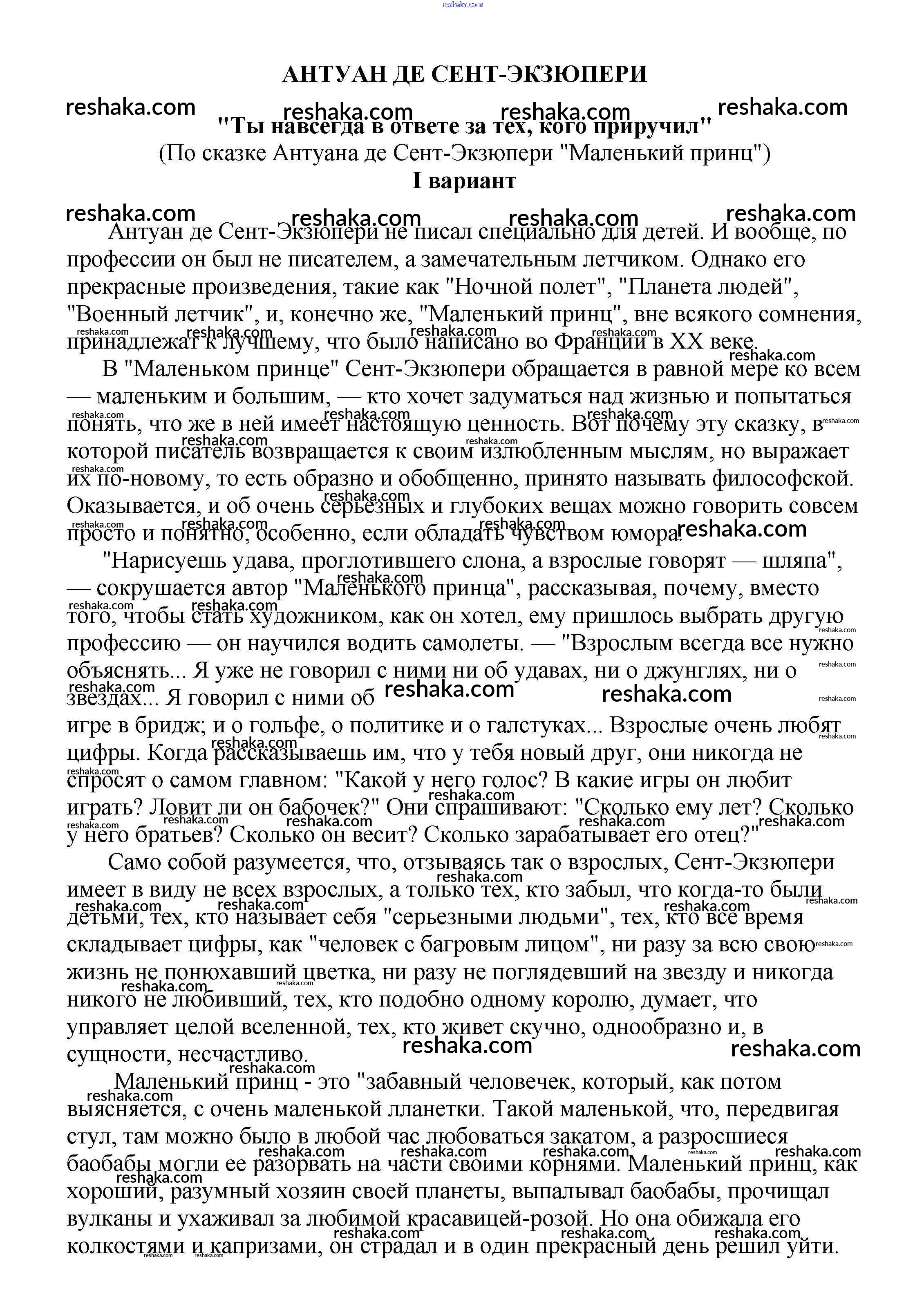 Решака - онлайн ответы Литература Белик, Музычук за 5-10 класс Сочинения 2017 - "Ты навсегда в ответе за тех, кого приручил" (По сказке Антуана де Сент-Экзюпери "Маленький принц")