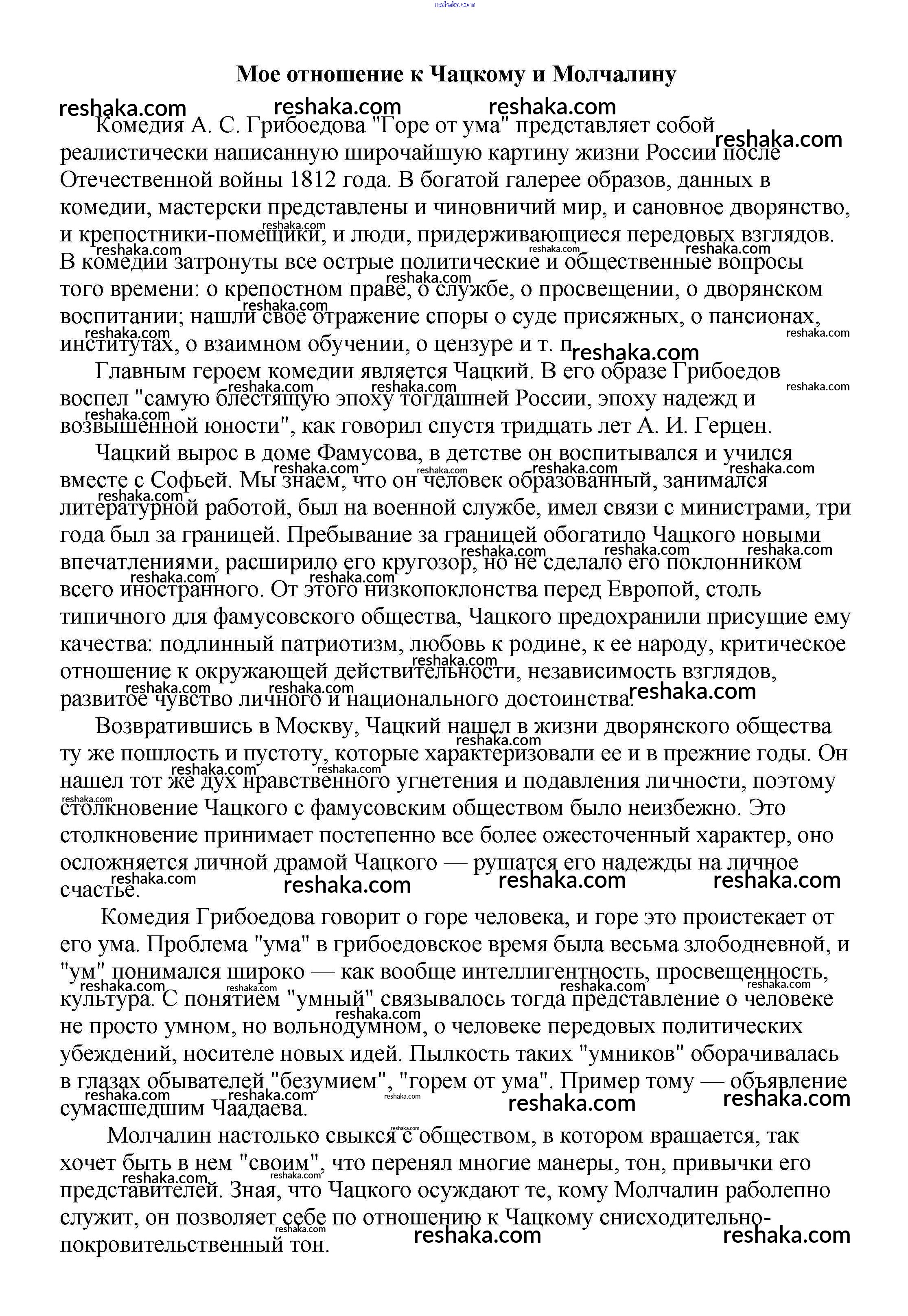 Решака - онлайн ответы Литература Белик, Музычук за 5-10 класс Сочинения 2017 - Мое отношение к Чацкому и Молчалину
