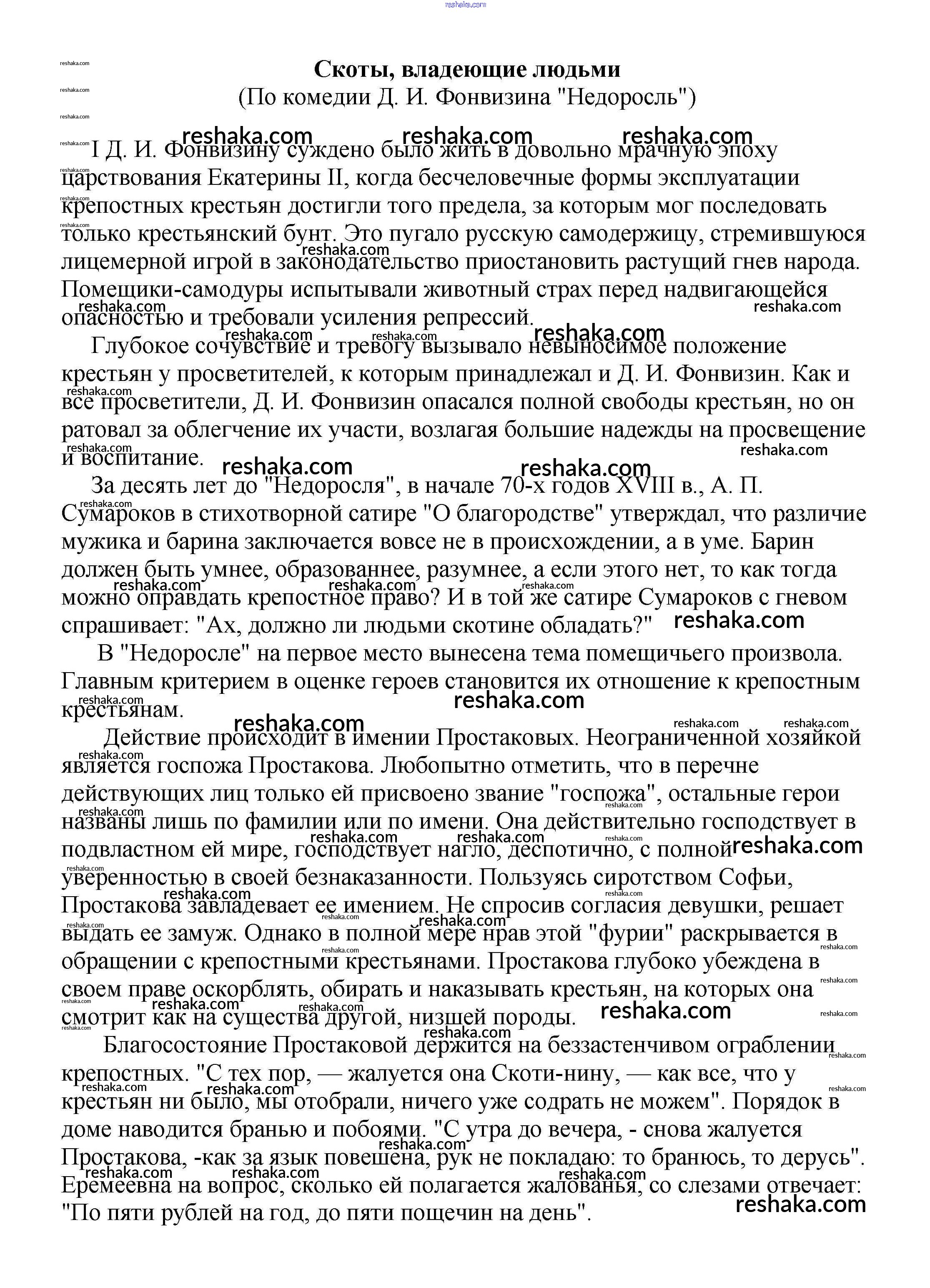 Решака - онлайн ответы Литература Белик, Музычук за 5-10 класс Сочинения 2017 - Скоты, владеющие людьми (По комедии Д. И. Фонвизина "Недоросль")