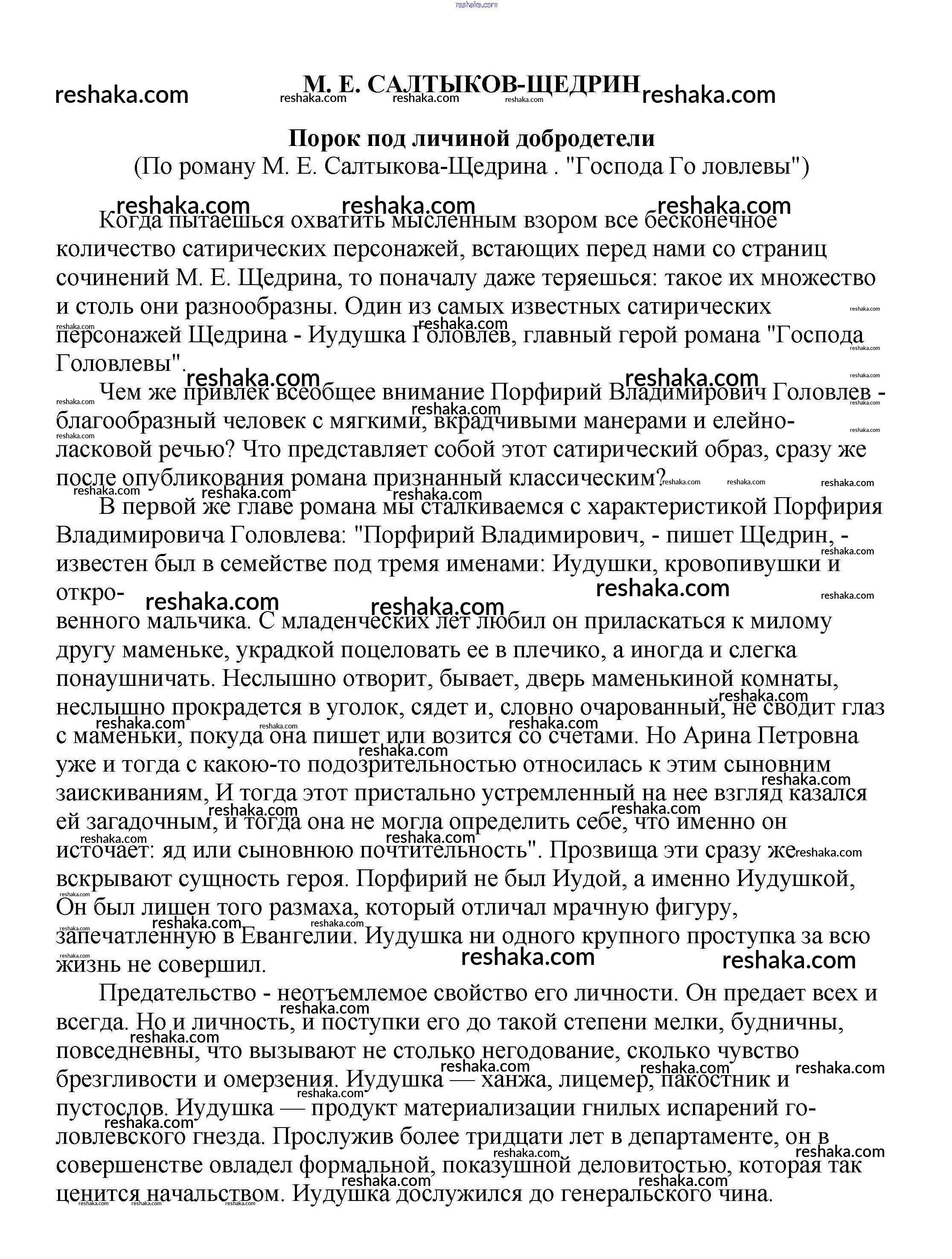 Решака - онлайн ответы Литература Белик, Музычук за 5-10 класс Сочинения 2017 - Порок под личиной добродетели (По роману М. Е. Салтыкова-Щедрина . "Господа Го ловлевы")