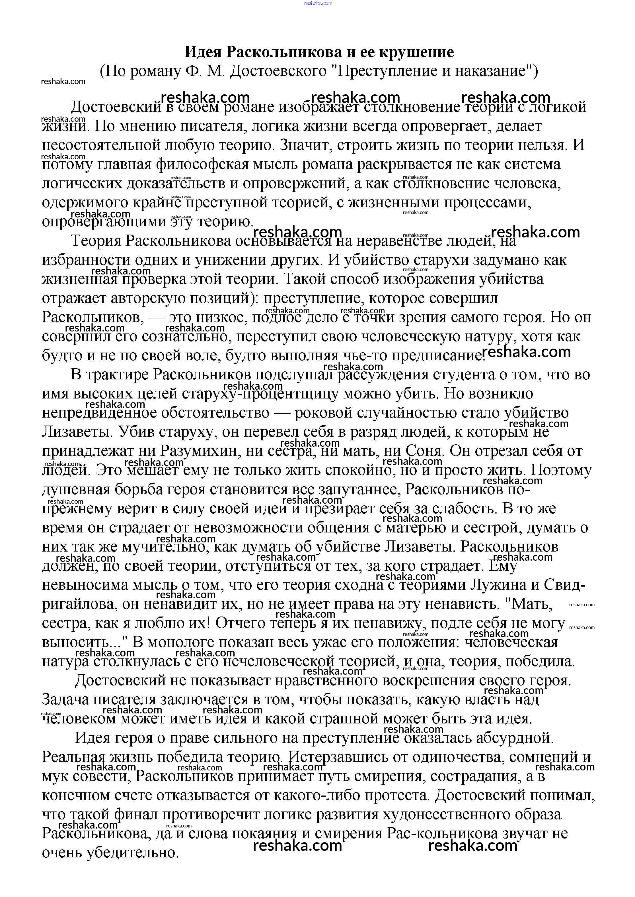 Решака - онлайн ответы Литература Белик, Музычук за 5-10 класс Сочинения 2017 - Идея Раскольникова и ее крушение (По роману Ф. М. Достоевского "Преступление и наказание")