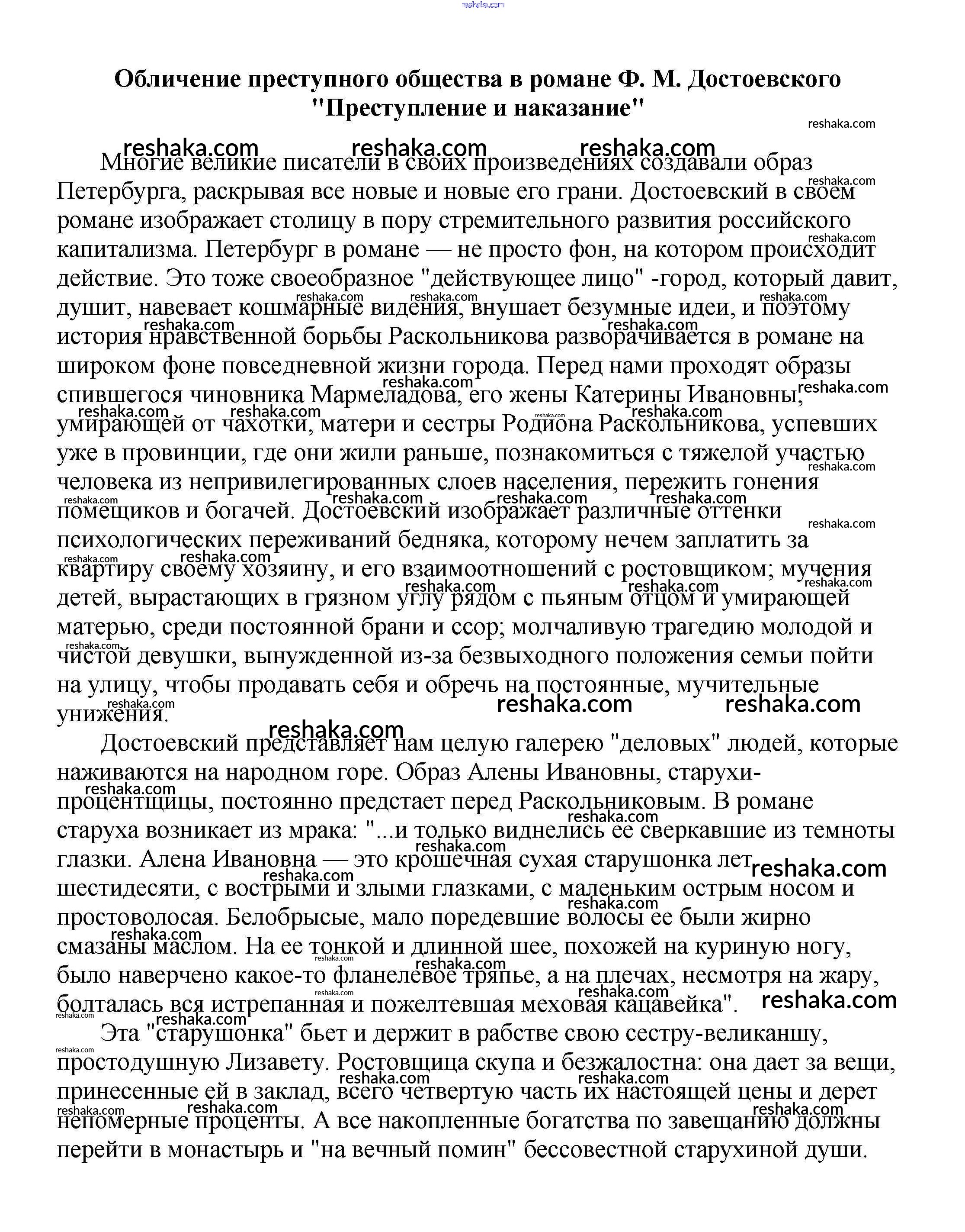 Решака - онлайн ответы Литература Белик, Музычук за 5-10 класс Сочинения 2017 - Обличение преступного общества в романе Ф. М. Достоевского "Преступление и наказание"