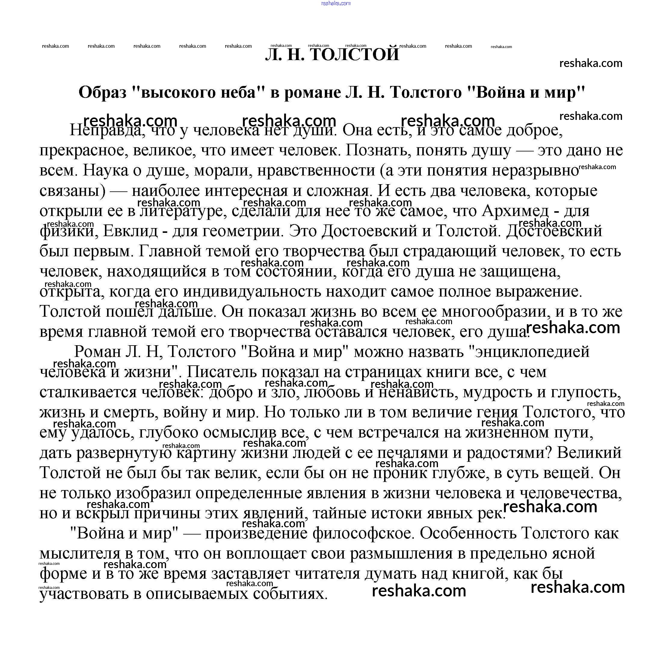 Решака - онлайн ответы Литература Белик, Музычук за 5-10 класс Сочинения 2017 - Образ "высокого неба" в романе Л. Н. Толстого "Война и мир"