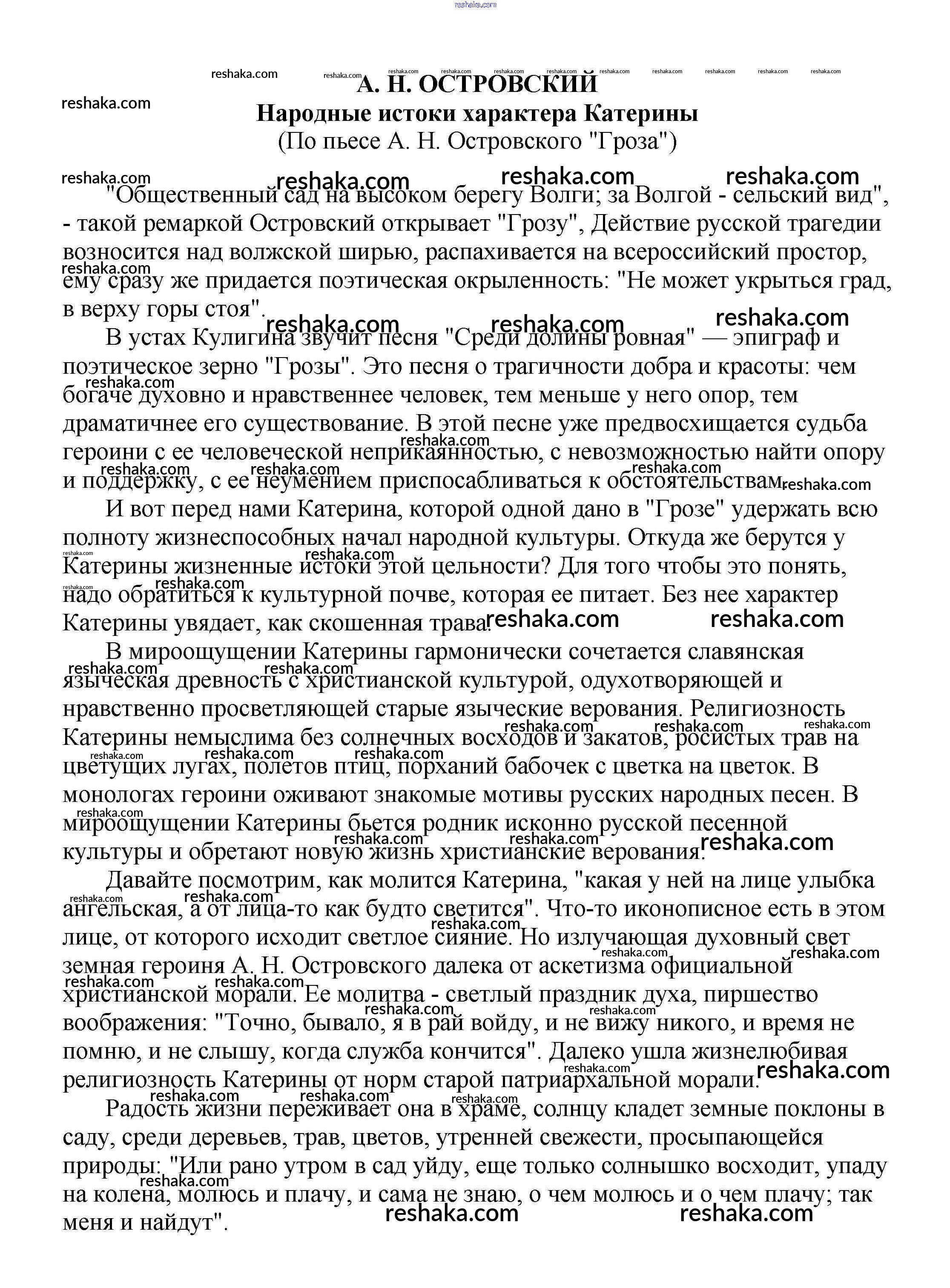 Решака - онлайн ответы Литература Белик, Музычук за 5-10 класс Сочинения 2017 - Народные истоки характера Катерины (По пьесе А. Н. Островского "Гроза")