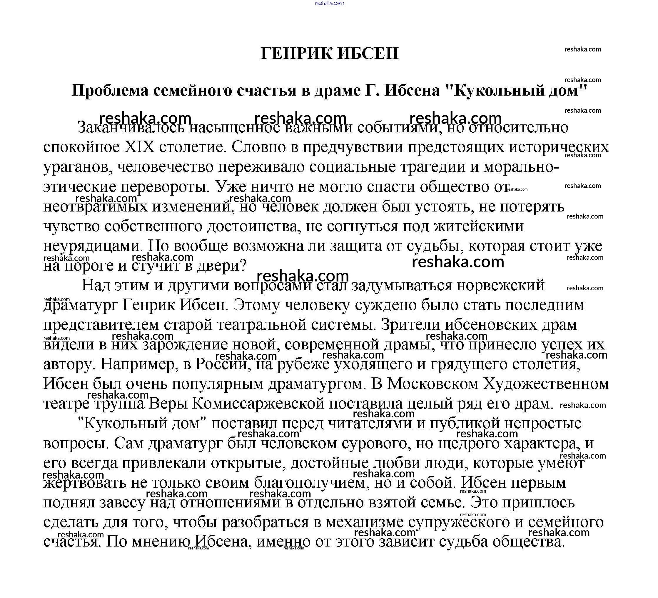 Решака - онлайн ответы Литература Белик, Музычук за 5-10 класс Сочинения 2017 - Проблема семейного счастья в драме Г. Ибсена "Кукольный дом"
