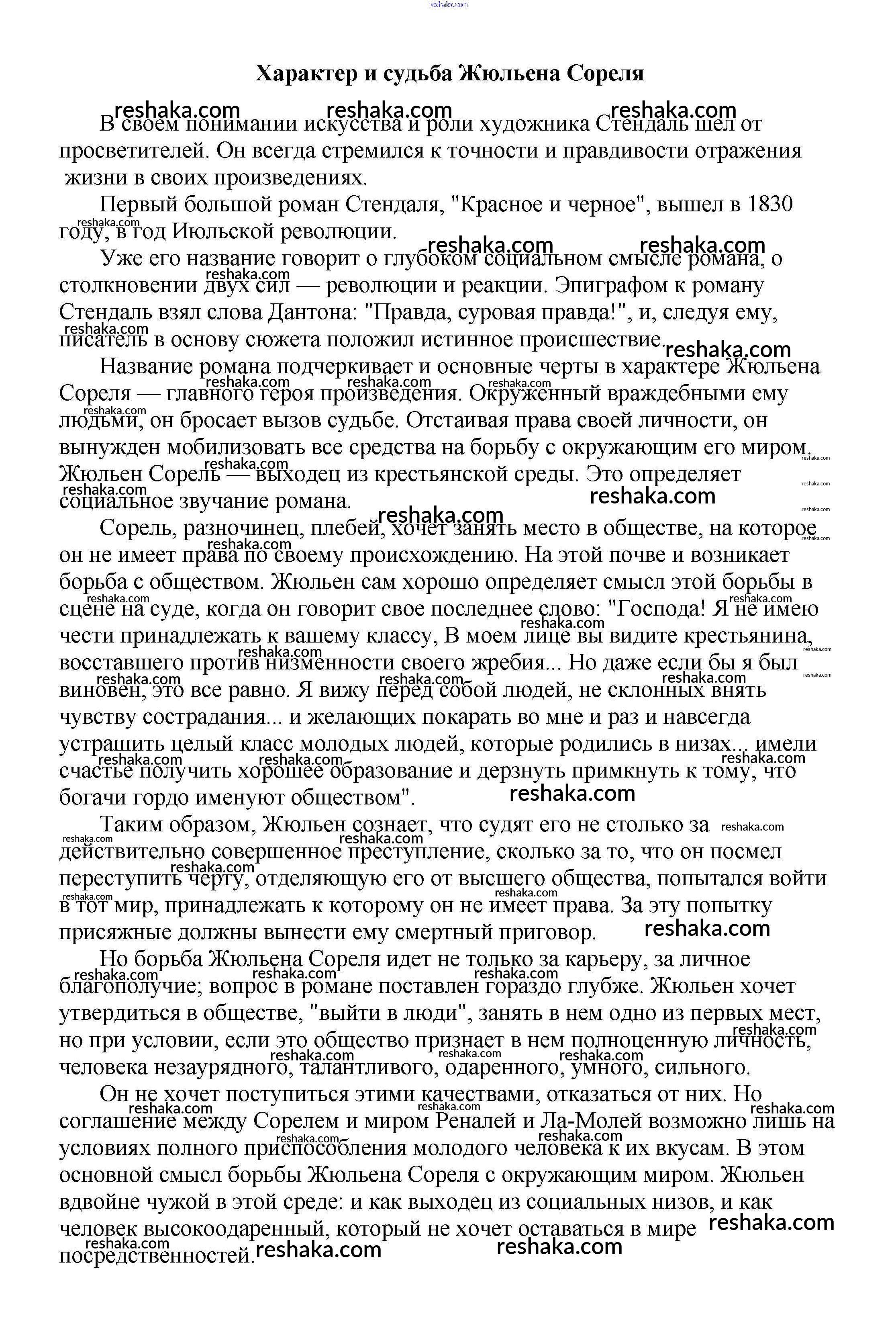 Решака - онлайн ответы Литература Белик, Музычук за 5-10 класс Сочинения 2017 - Характер и судьба Жюльена Сореля