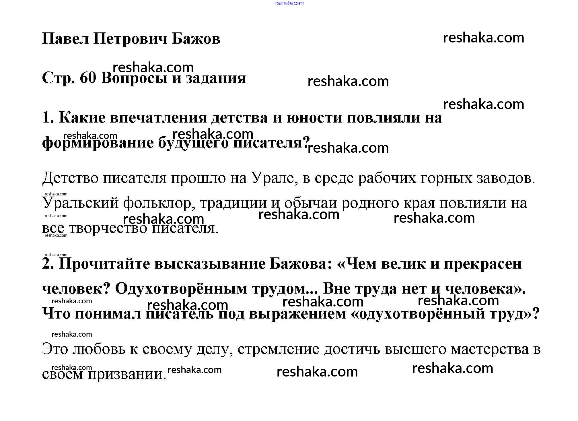 Представляем вам сборники по Литературе, с готовыми ответами к Учебнику Чертов школьной программы для учеников пятый класса. Это не просто гдз с ответом, а с подсказками, как верно решить П.П. Бажов Часть 2 (Темы) страница 60. Проверяй домашку с умом и получай высший балл!