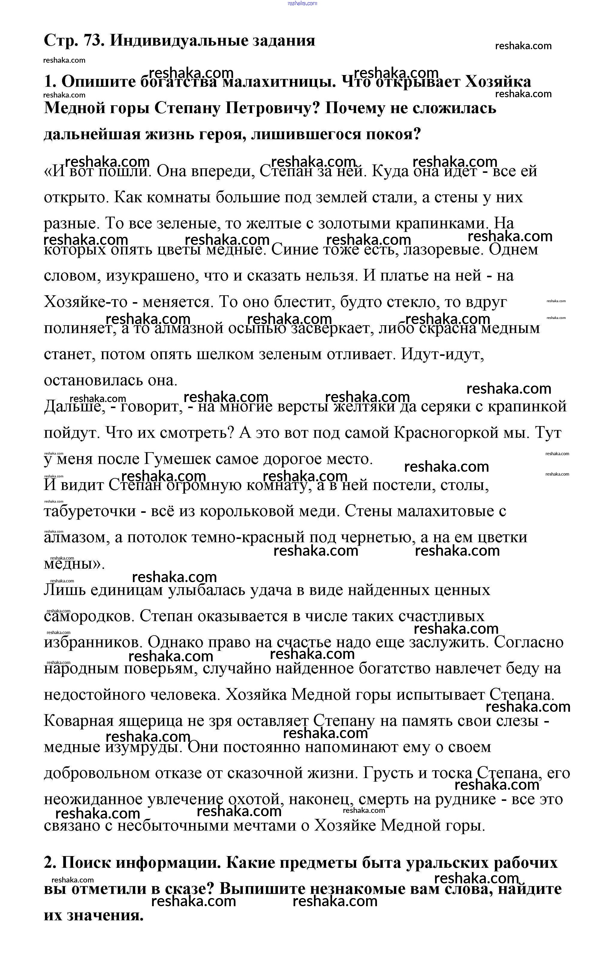 Представляем вам сборники по Литературе, с готовыми ответами к Учебнику Чертов школьной программы для учеников пятый класса. Это не просто гдз с ответом, а с подсказками, как верно решить П.П. Бажов Часть 2 (Темы) страница 73. Проверяй домашку с умом и получай высший балл!