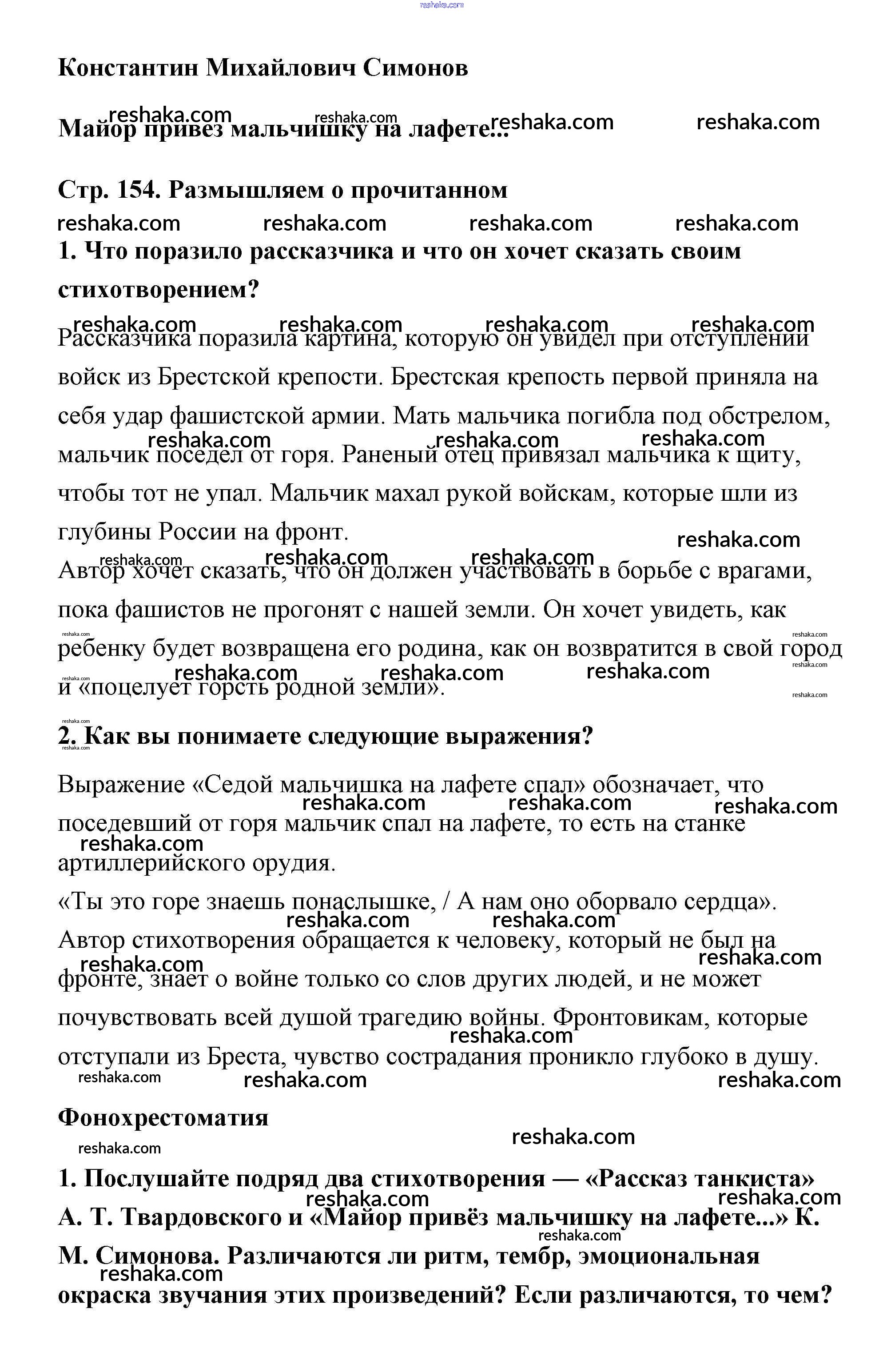Представляем вам сборники по Литературе, с готовыми ответами к Учебнику Коровина школьной программы для учеников пятый класса. Это не просто гдз с ответом, а с подсказками, как верно решить Симонов (Страницы) Часть 2 (Темы) 154. Проверяй домашку с умом и получай высший балл!