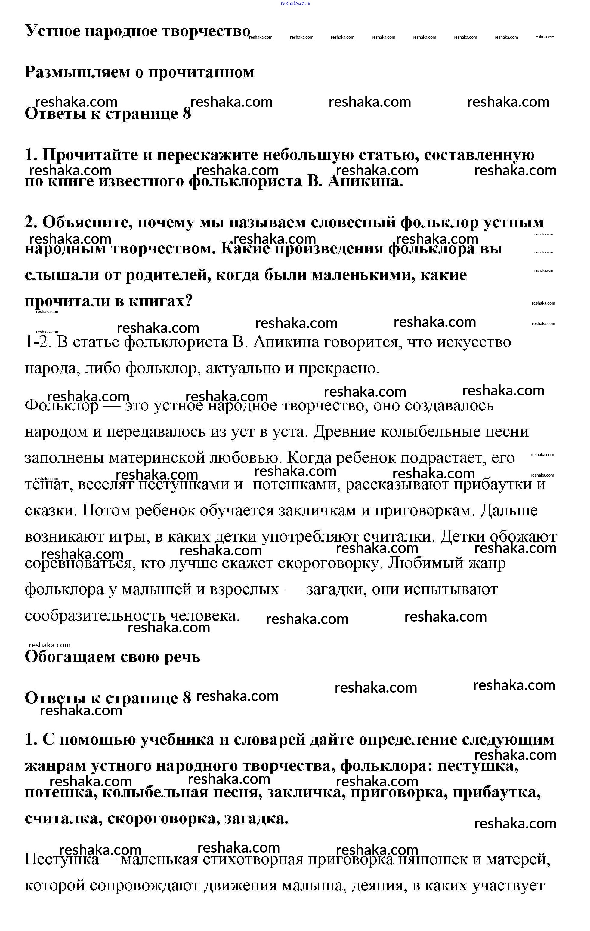 Решака - онлайн ответы Литература Коровина, Коровин за 5 класс Учебник ФГОС 2016 - 8