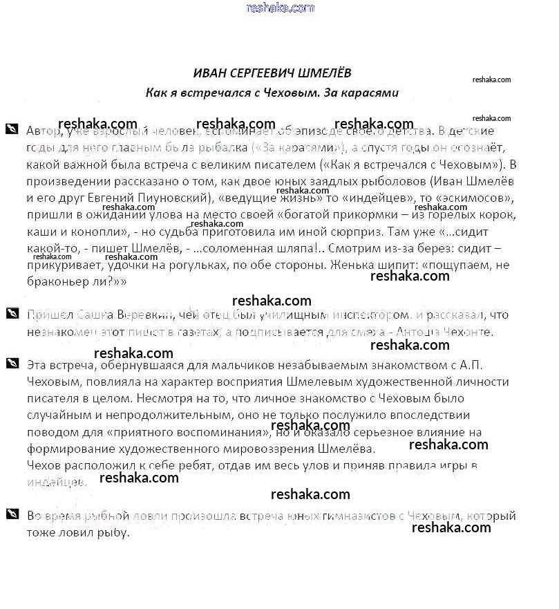 Решака - онлайн ответы Литература Курдюмова за 5 класс Рабочая тетрадь ФГОС 2017 - Иван Сергеевич Шмелёв Как я встречался с Чеховым. За карасями