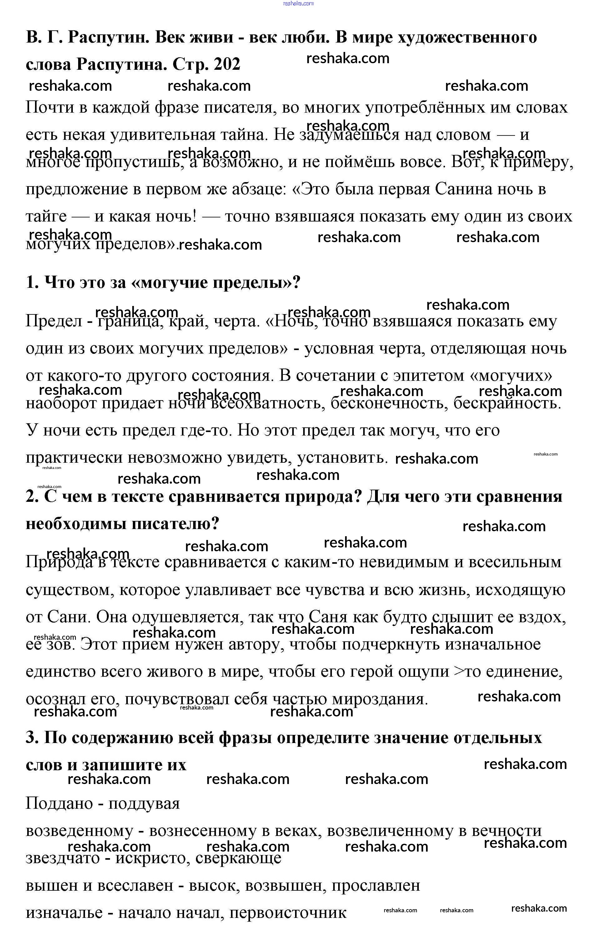 Представляем вам сборники по Литературе, с готовыми ответами к Учебнику Меркин школьной программы для учеников пятый класса. Это не просто гдз с ответом, а с подсказками, как верно решить В. Г. Распутин Часть 2 (Страницы) 202. Проверяй домашку с умом и получай высший балл!