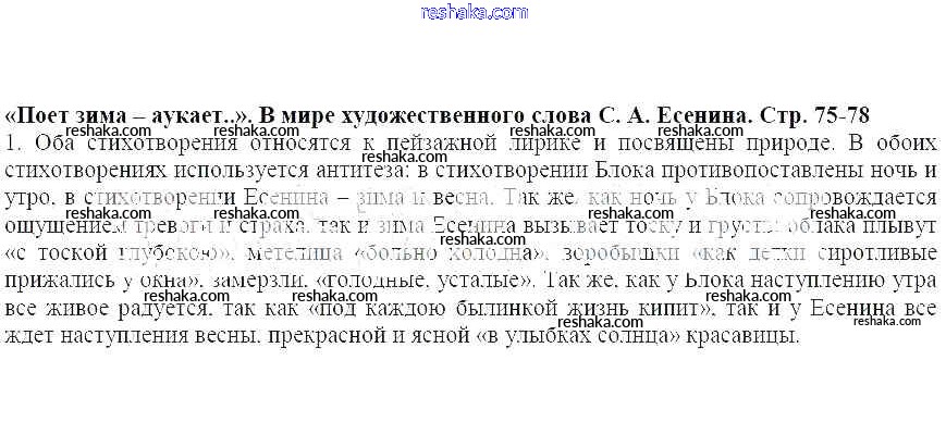 Представляем вам сборники по Литературе, с готовыми ответами к Учебнику Меркин школьной программы для учеников пятый класса. Это не просто гдз с ответом, а с подсказками, как верно решить С. А. Есенин Часть 2 (Страницы) 75. Проверяй домашку с умом и получай высший балл!