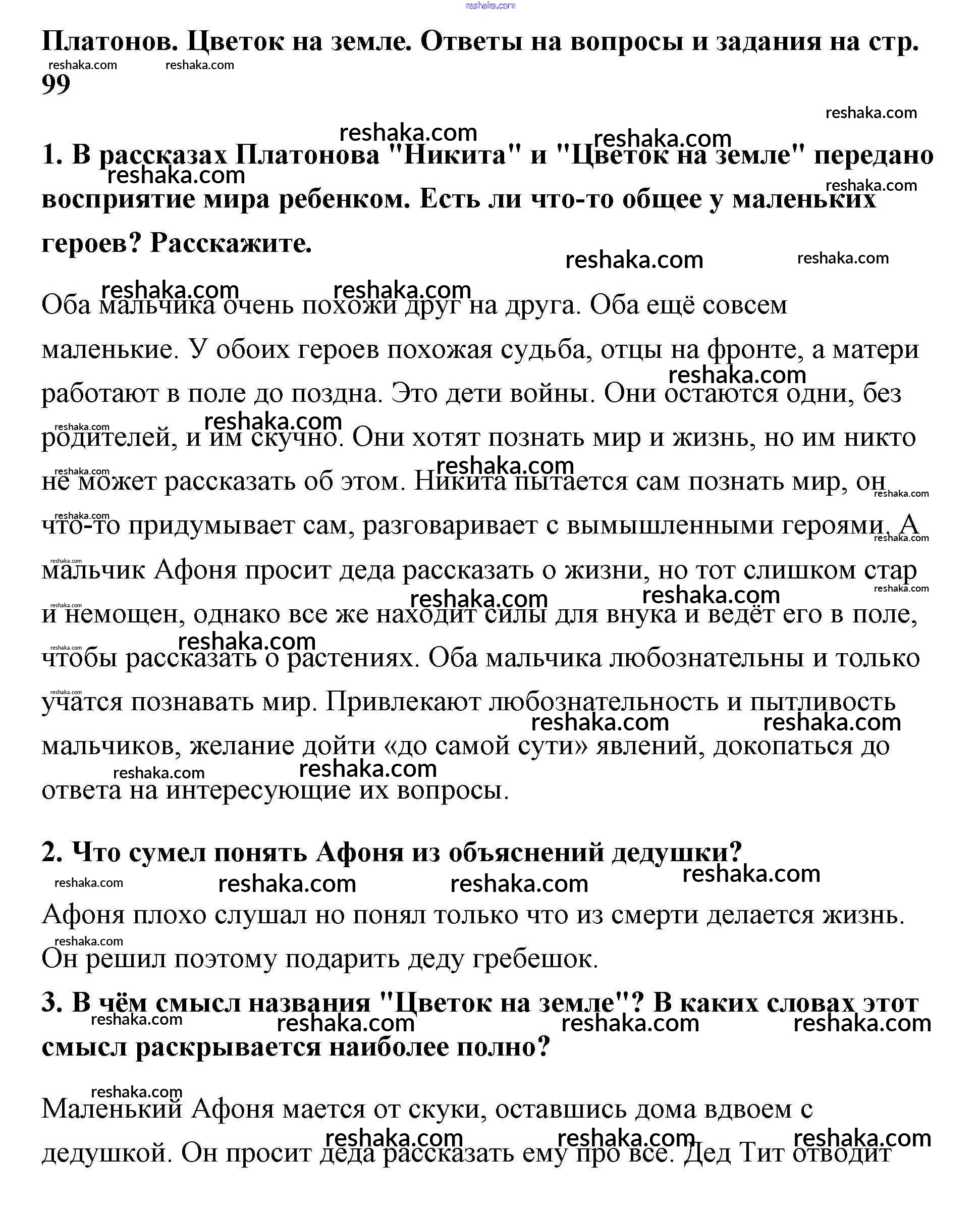 Представляем вам сборники по Литературе, с готовыми ответами к Учебнику Меркин школьной программы для учеников пятый класса. Это не просто гдз с ответом, а с подсказками, как верно решить А. П. Платонов Часть 2 (Страницы) 99. Проверяй домашку с умом и получай высший балл!