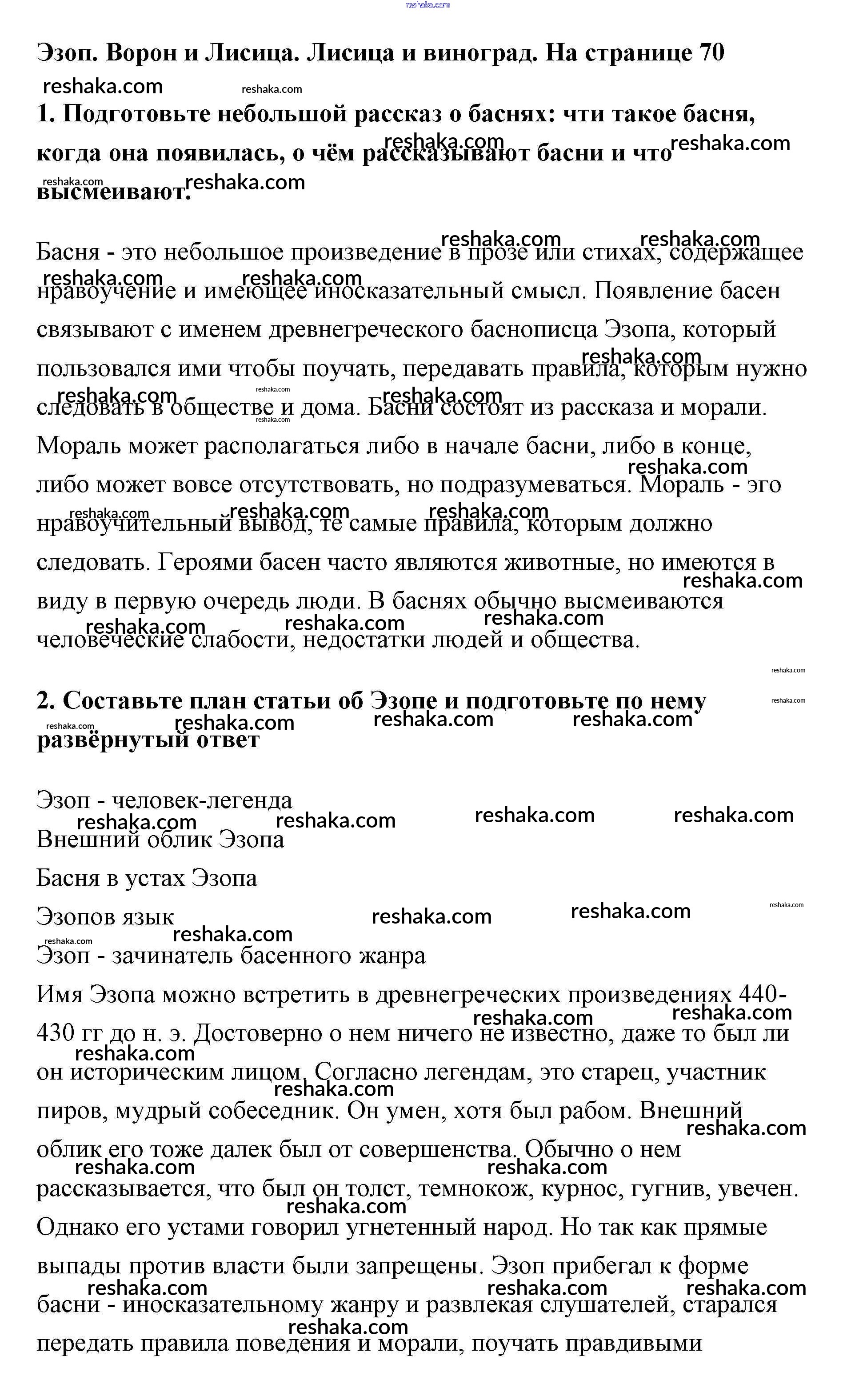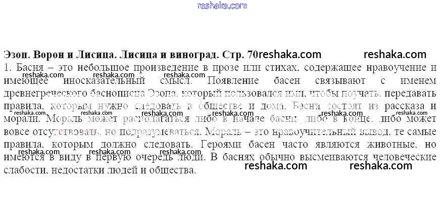 Решака - онлайн ответы Литература Меркин за 5 класс Учебник ФГОС 2016 - 70