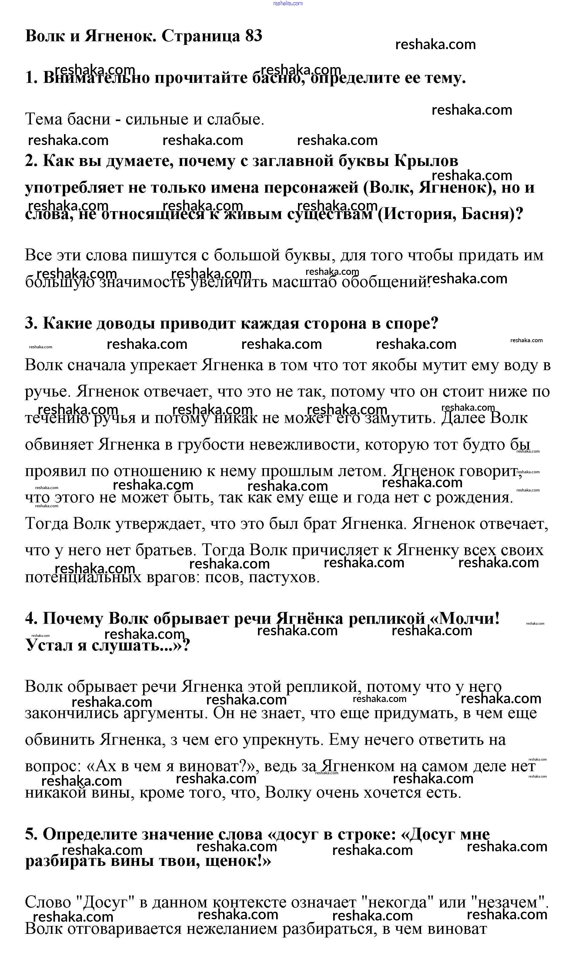 Решака - онлайн ответы Литература Меркин за 5 класс Учебник ФГОС 2016 - 83