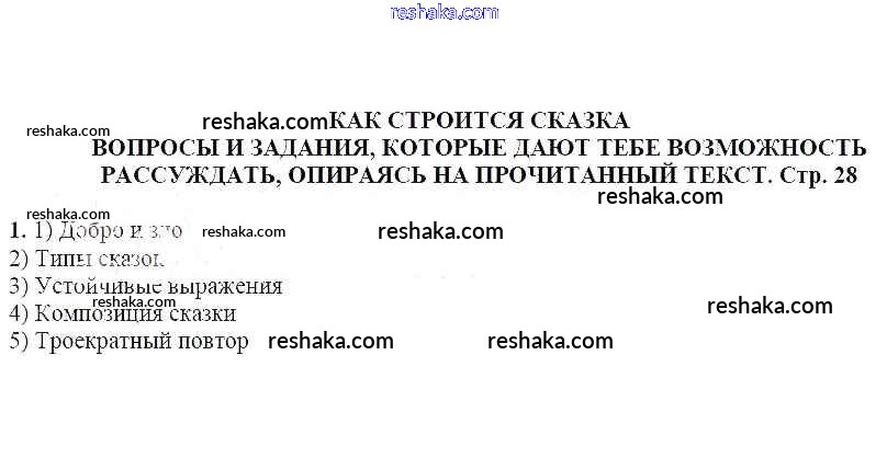 часть 1 / Как строится сказка / Вопросы и задания, которые дают тебе возможность рассуждать, опираясь на прочитанный текст (стр. 28) / 1