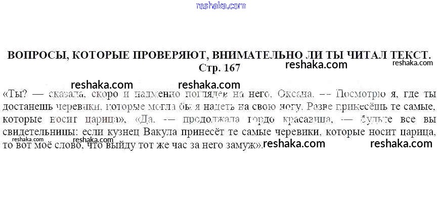 Решака - онлайн ответы Литература Москвин за 5 класс Учебник ФГОС 2020 - Вопросы, которые проверяют, внимательно ли ты читал текст (стр. 167)