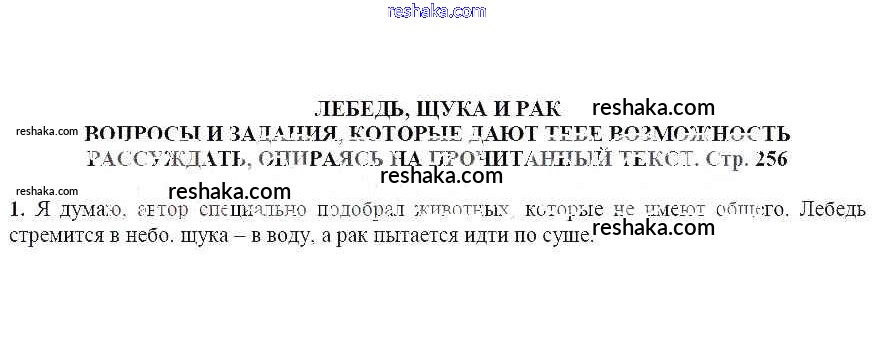 часть 1 / Лебедь, рак и щука / Вопросы и задания, которые дают тебе возможность рассуждать, опираясь на прочитанный текст (стр. 256) / 1