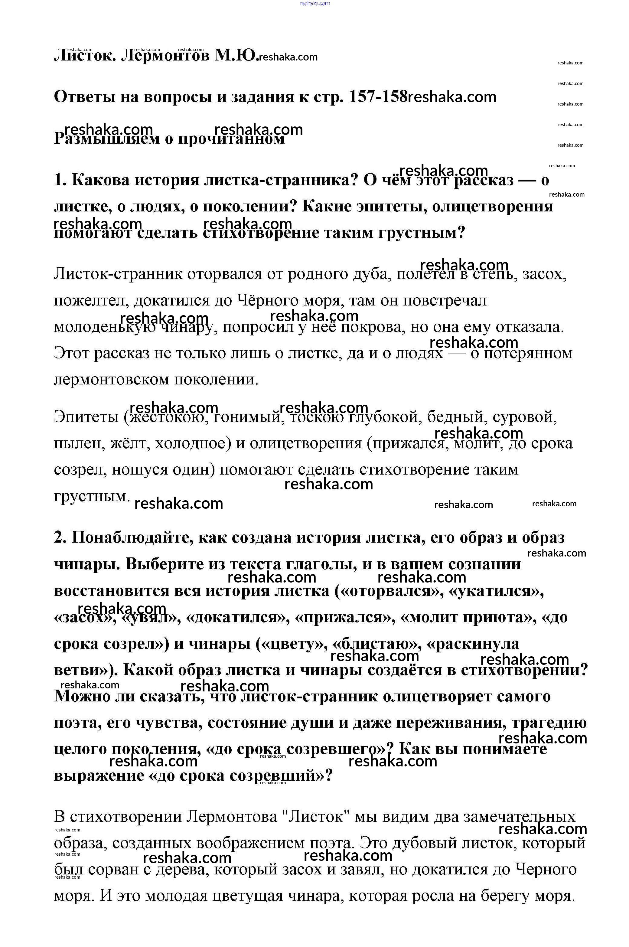 Представляем вам сборники по Литературе, с готовыми ответами к Учебнику Полухина школьной программы для учеников шестой класса. Это не просто гдз с ответом, а с подсказками, как верно решить Лермонтов Часть 1 (Новое 16-е издание) страница 157. Проверяй домашку с умом и получай высший балл!