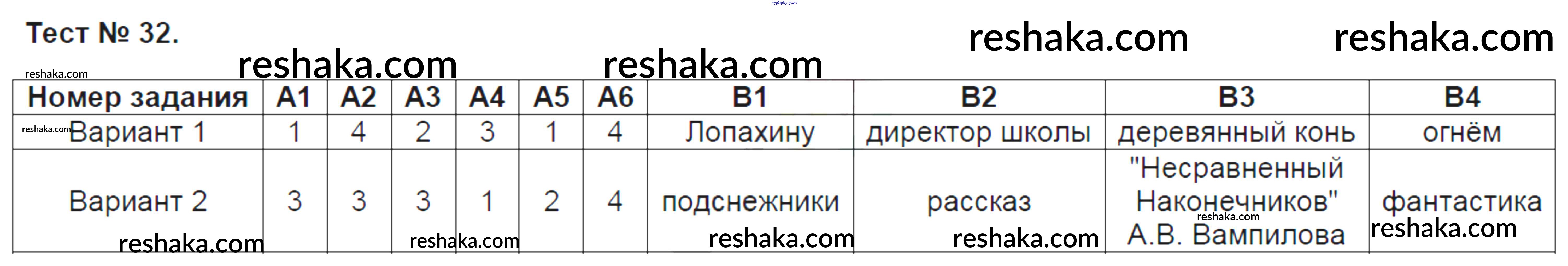 Решака - онлайн ответы Литература Зубова за 7 класс Контрольно-измерительные материалы (КИМ) ФГОС 2016 - Тест №32