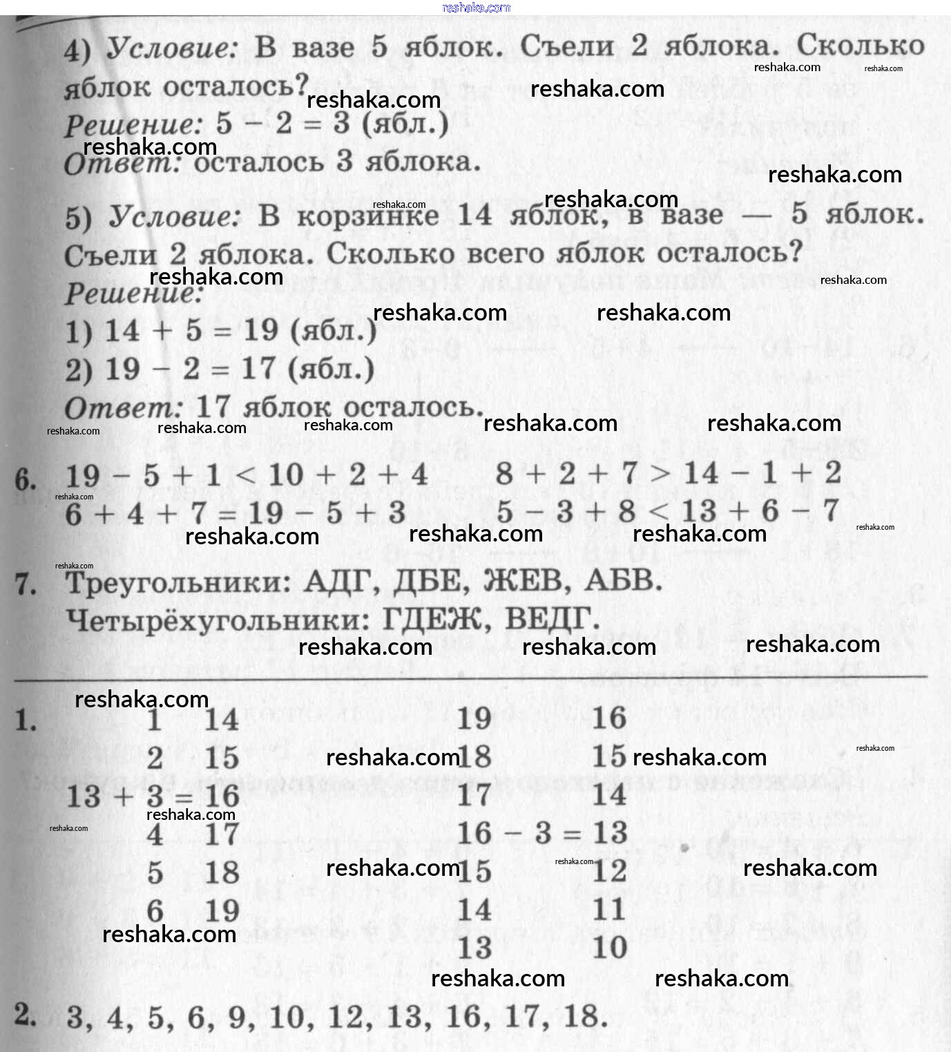 Решака - онлайн ответы Математика Дорофеев, Миракова за 1 класс Учебник ФГОС 2015 - 74