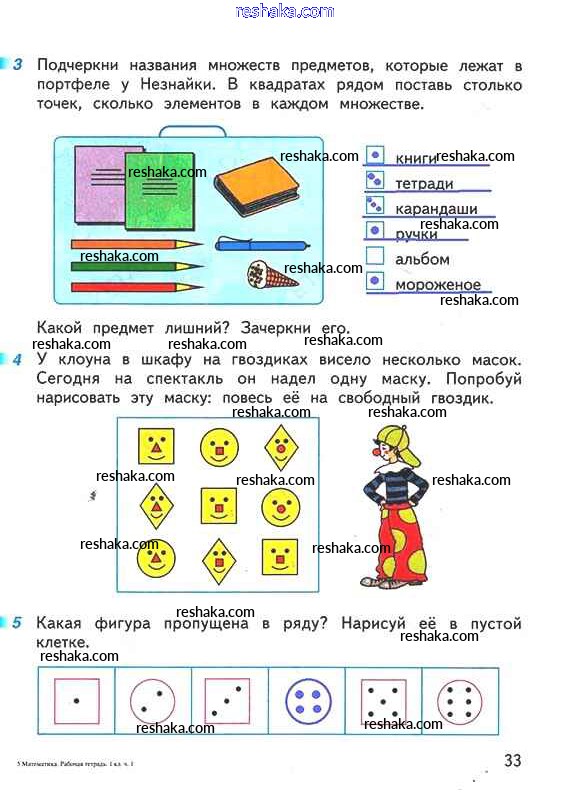 Решака - онлайн ответы Математика Дорофеев, Миракова за 1 класс Рабочая тетрадь ФГОС 2016 - 33