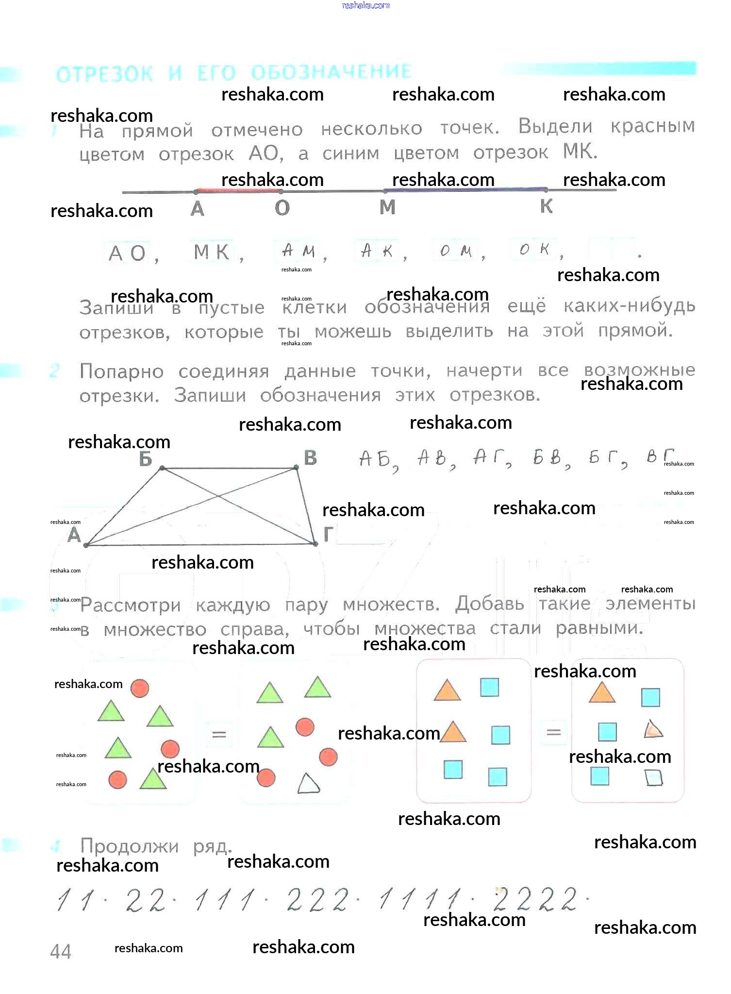 Решака - онлайн ответы Математика Дорофеев, Миракова за 1 класс Рабочая тетрадь ФГОС 2016 - 44