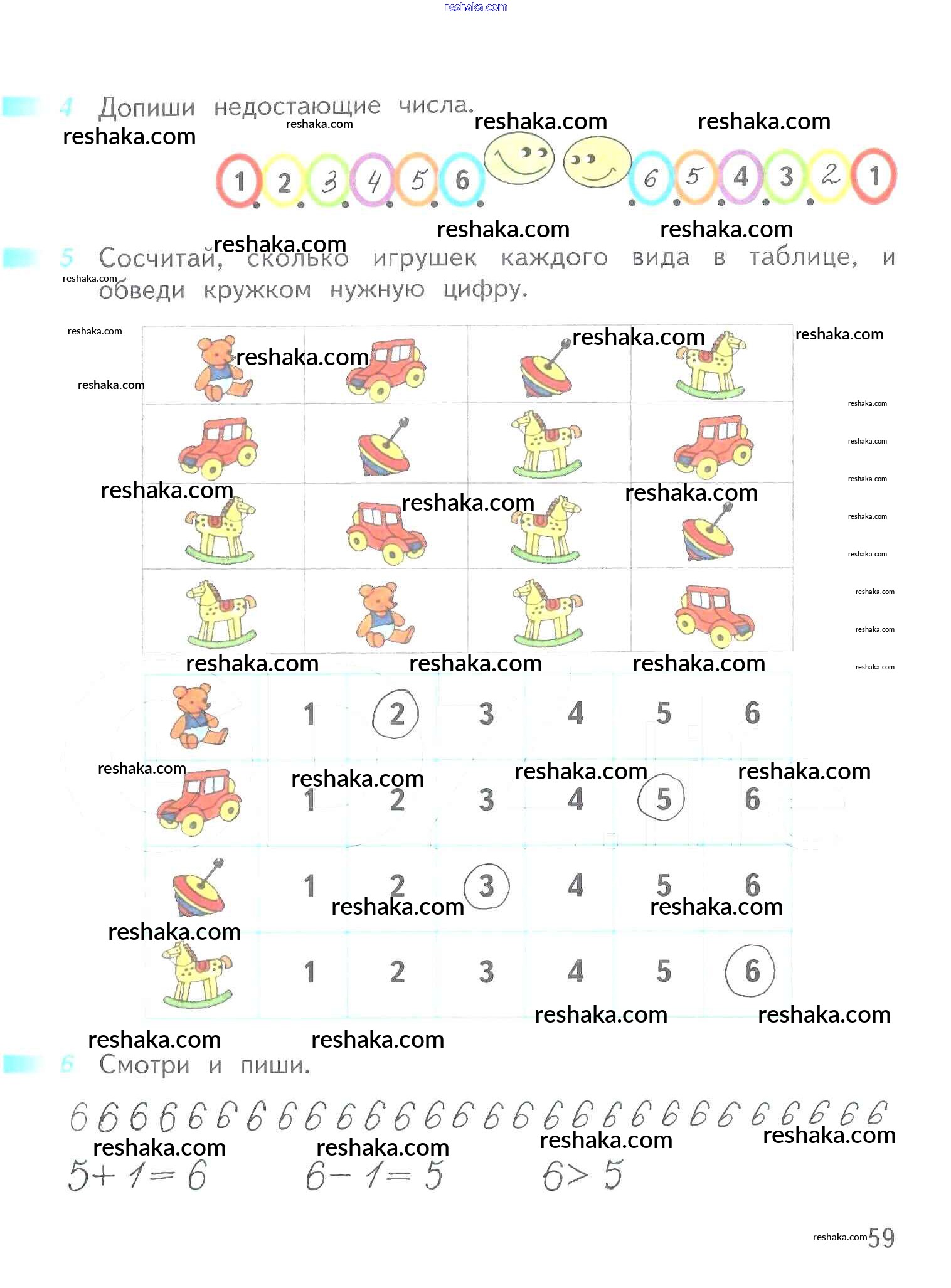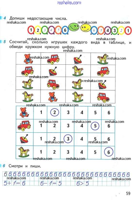 Решака - онлайн ответы Математика Дорофеев, Миракова за 1 класс Рабочая тетрадь ФГОС 2016 - 59